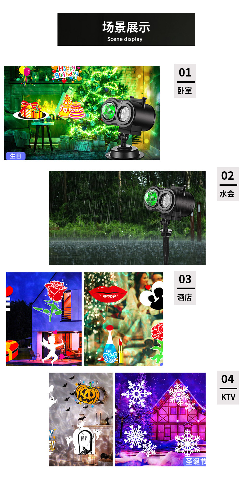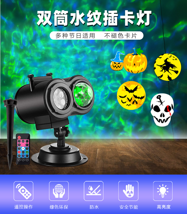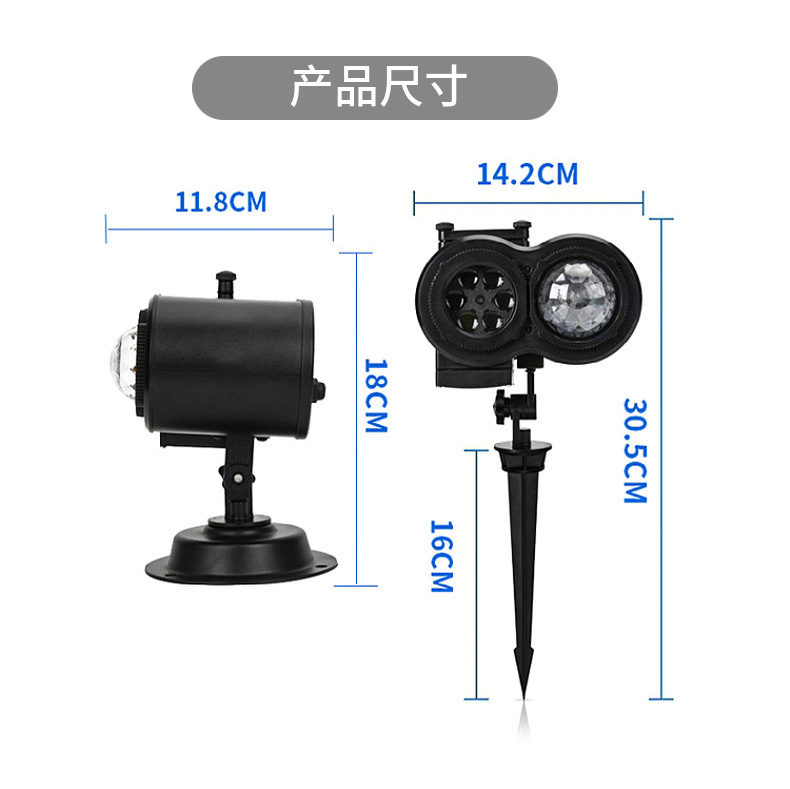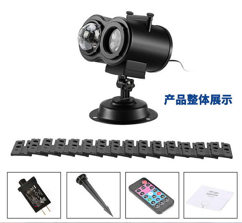 Proyector exterior impermeable de copos de nieve con doble tubo, 16 patrones y control remoto, luz decorativa para patio