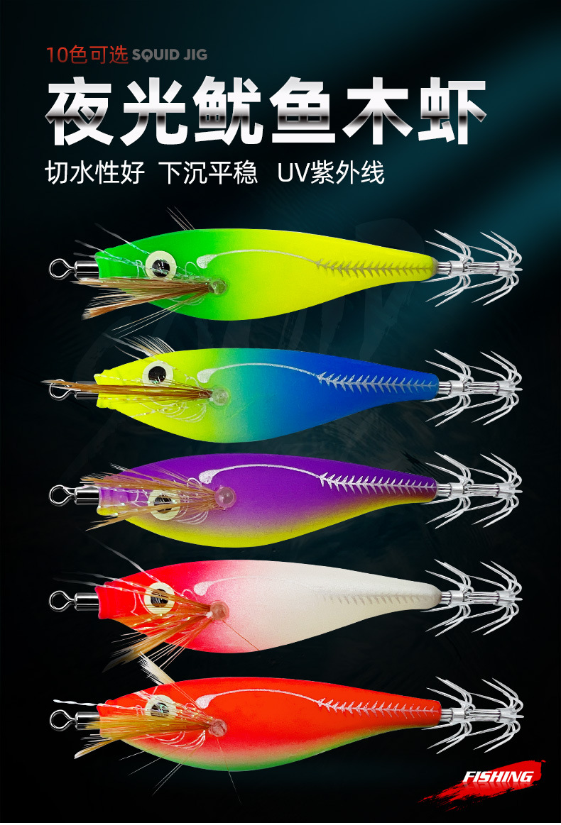 Luz nocturna horizontal camarón cinturón de perlas sonoras de madera gancho de pesca marina equilibrio de luz nocturna camarón luya cebo falso cebo duro cebo al por mayor