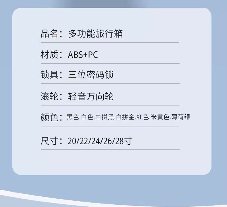 ![[Fábrica de selección estricta] maleta de 24 pulgadas de gran capacidad, maleta de tracción de 20 pulgadas de nuevo estudiante](https://cbu01.alicdn.com/img/ibank/O1CN01nRiixV1w2YOmBfDEG_!!2218416086250-0-cib.jpg?x-oss-process=image/resize,m_pad,h_300,w_300,limit_0)