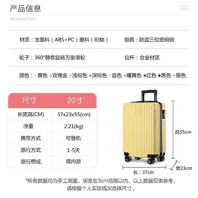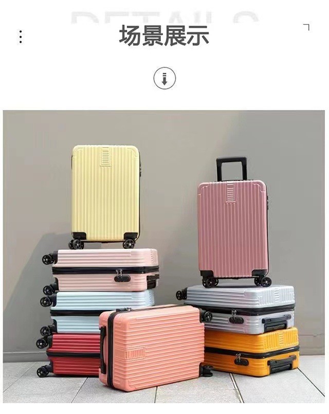 Fábrica de maletas al por mayor nuevo 20 pulgadas caja de tracción de color sólido puede imprimir logotipo universal rueda caja de bloqueo de contraseña