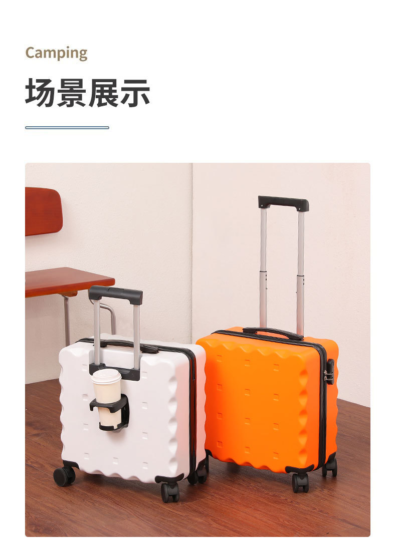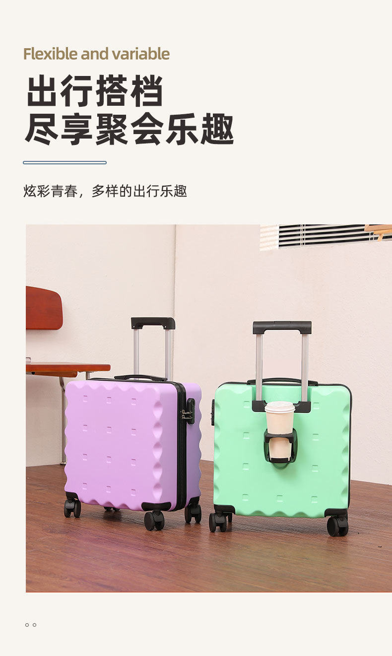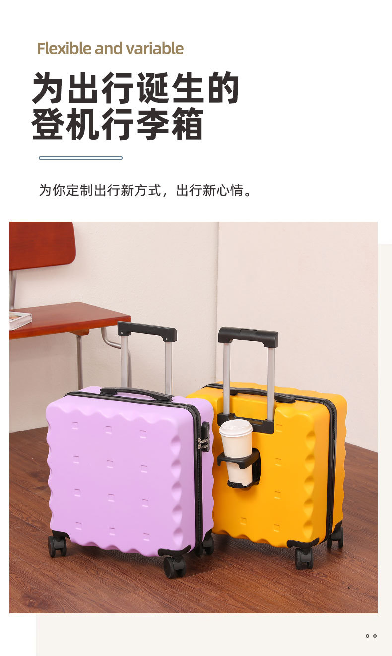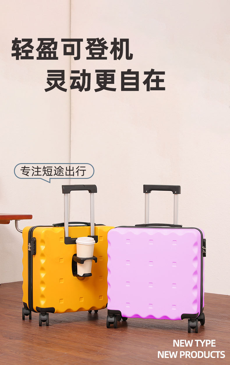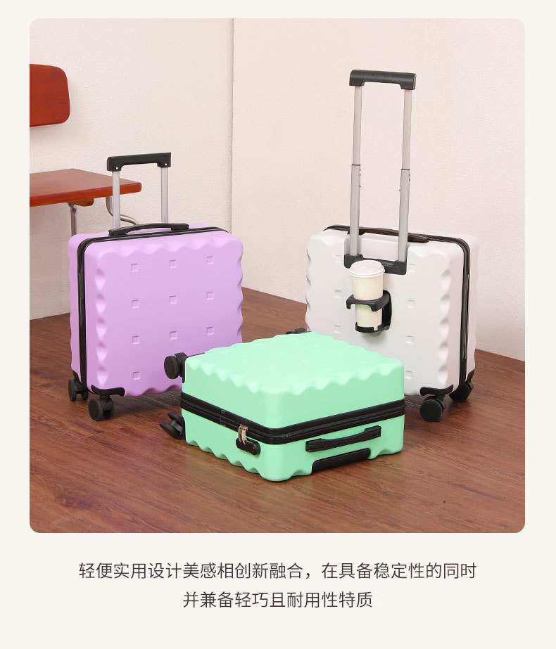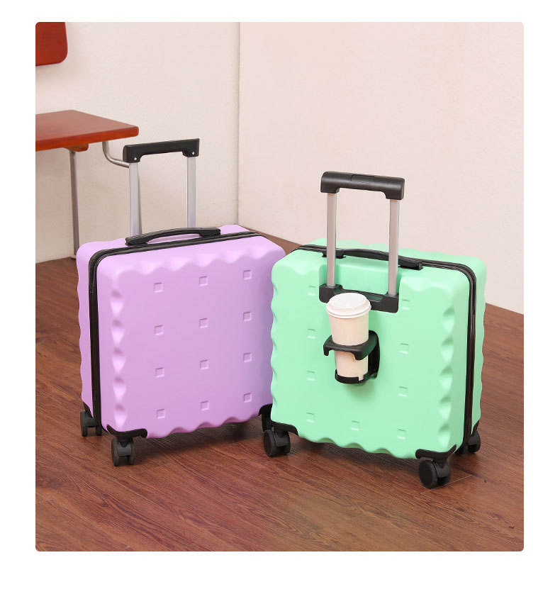 Maleta de embarque de 18 pulgadas tipo galletas maleta de alto valor facial pequeña maleta de tracción de embarque encantadora