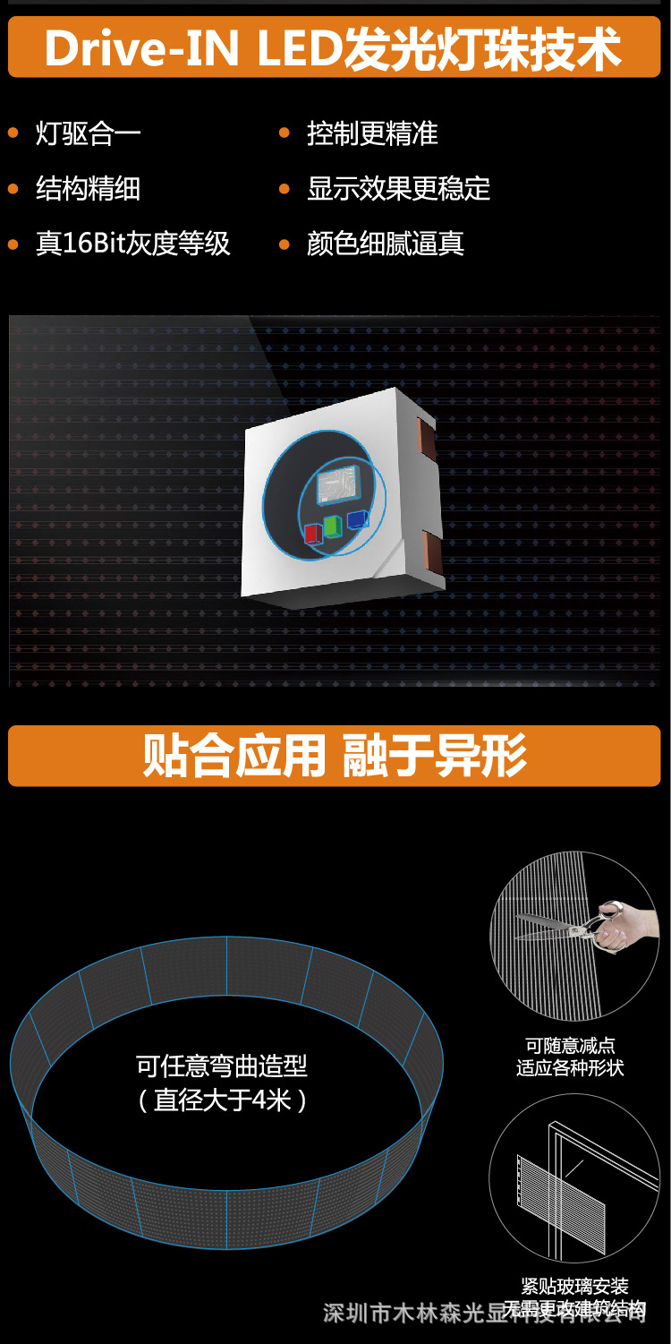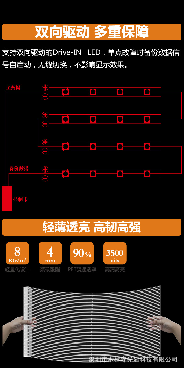 Pantalla LED flexible transparente para vidrio, cortina de pared, pantalla fija en el centro comercial Mulinsen con alto brillo