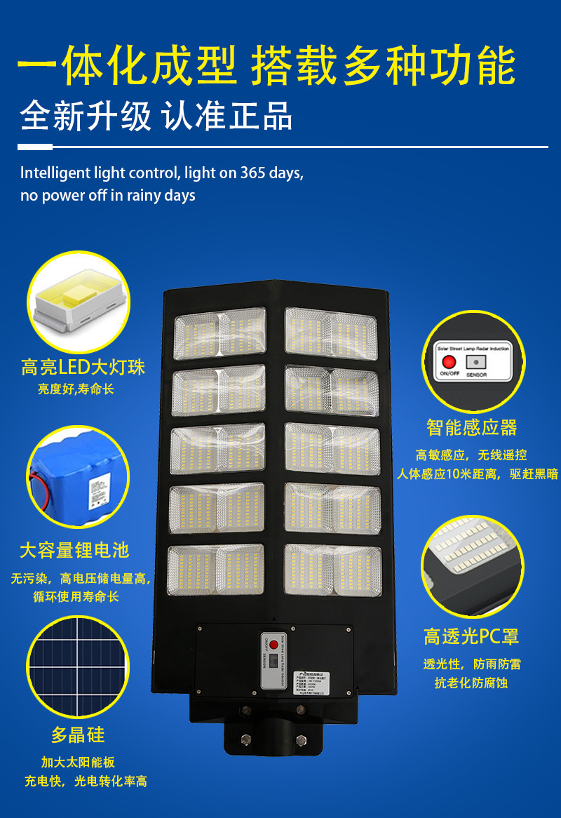 lámpara solar de alta potencia impermeable al aire libre nuevo patio rural inducción integrada inducción inteligente