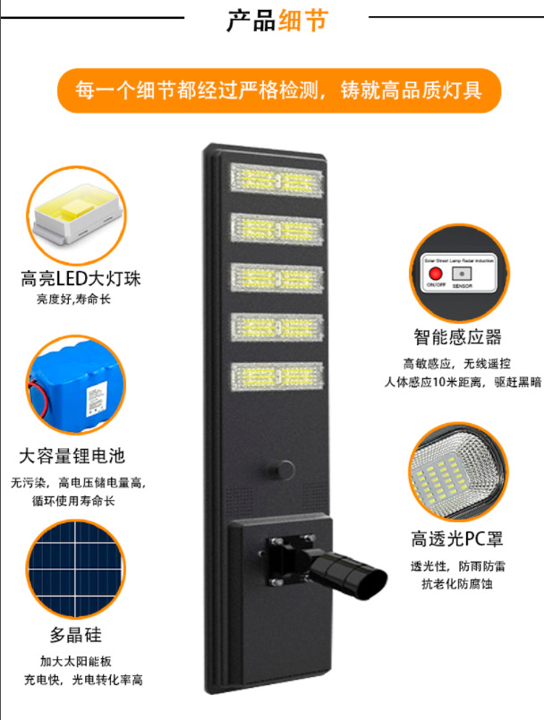 Luz de calle LED solar integrada Nueva construcción rural Carretera Carretera Carretera Luz solar Luz solar de sensor remoto