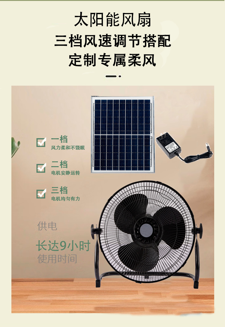 Ventilador de carga solar, fuerte viento doméstico, batería silenciosa vertical, ventilador de movimiento de cabeza, camping al aire libre, portátil
