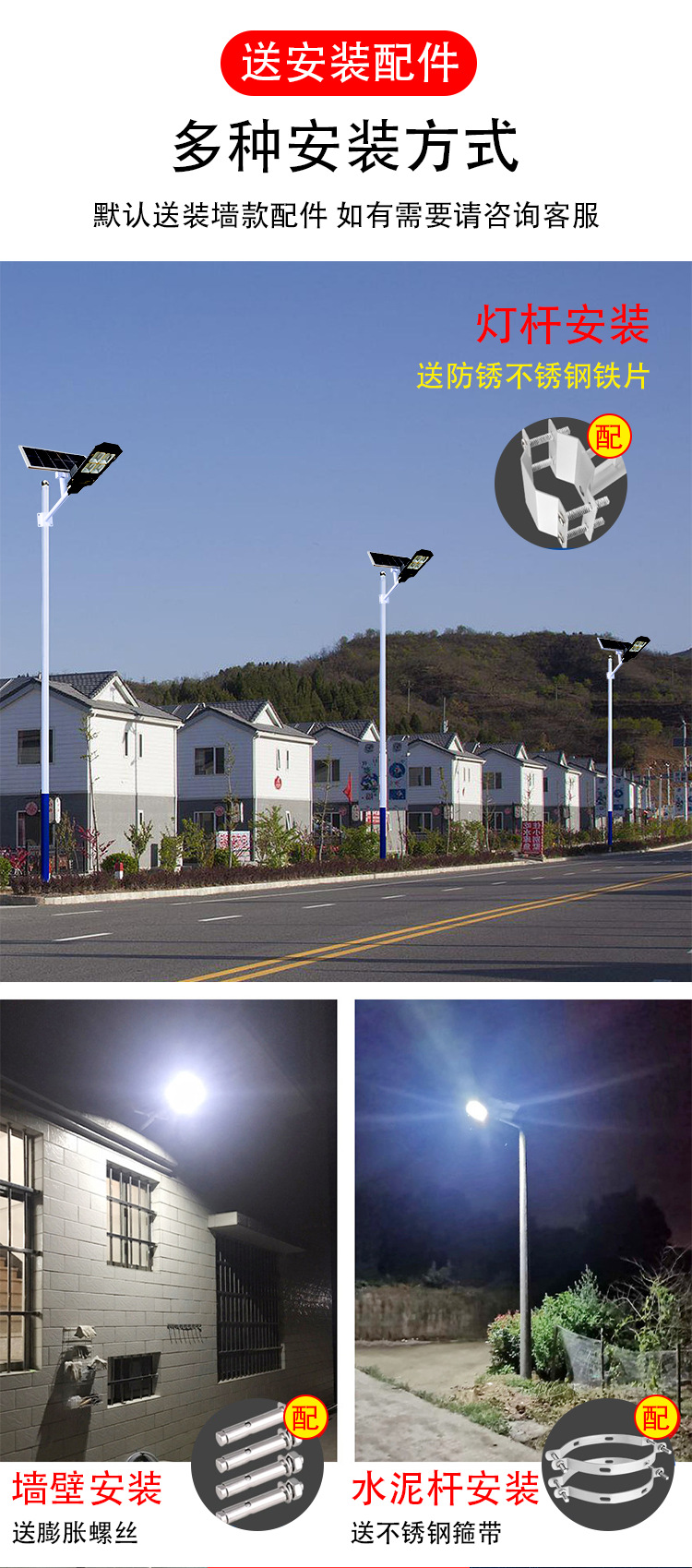 Luces solares LED para exteriores, luces para jardín, luces de paisaje, luces de ingeniería de alta potencia ajustables para carreteras, postes altos