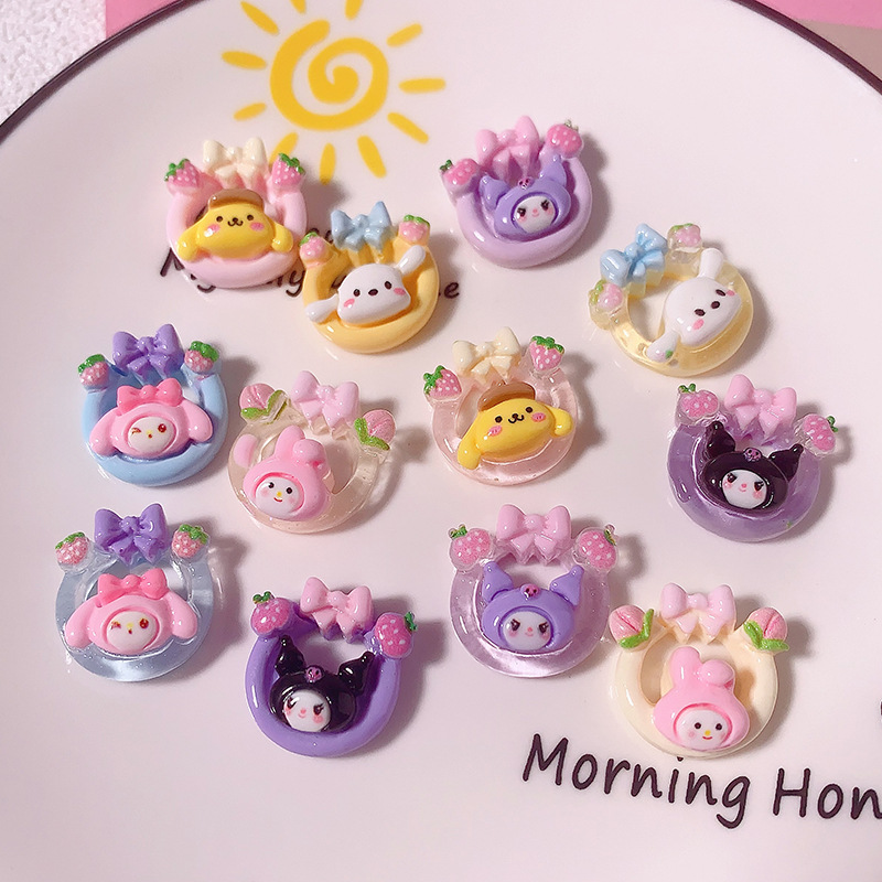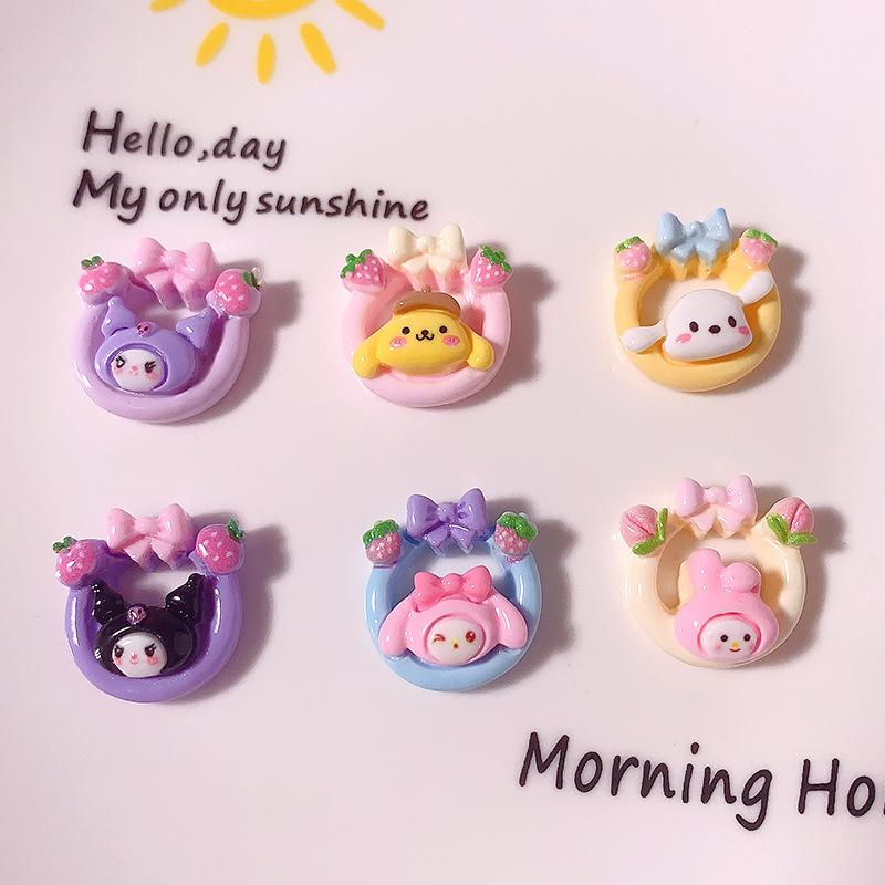 Cestas de flores de fruta de dibujos animados Sanrio accesorios de resina diy caja de teléfono móvil agujero de botón de zapato taza de agua material hecho a mano