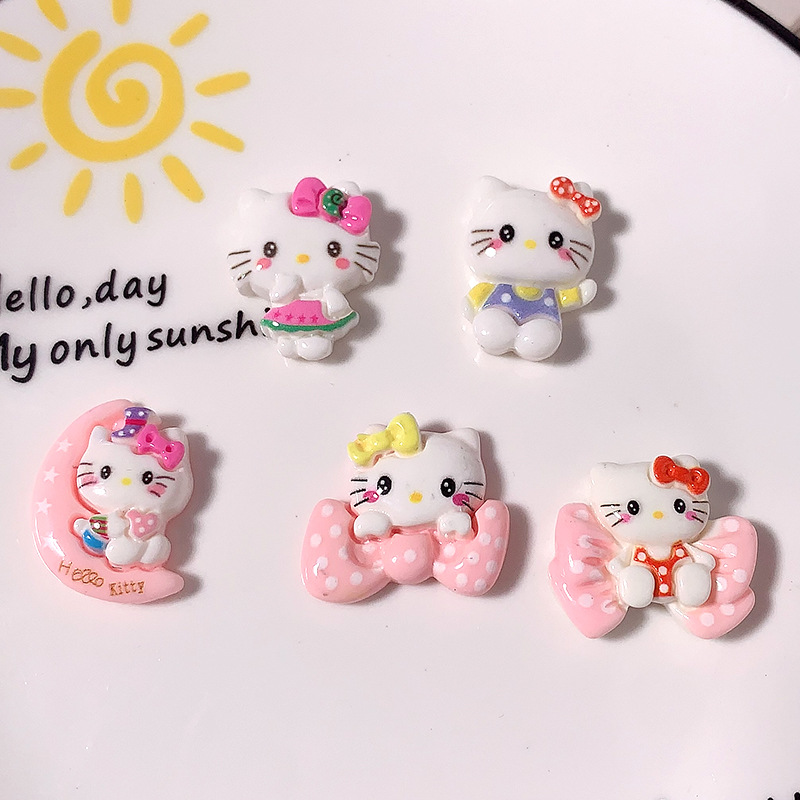 Nuevos accesorios de resina de gato de dibujos animados KT pegamento de crema casero diy clips de pelo para niños botones de zapatos parches de belleza