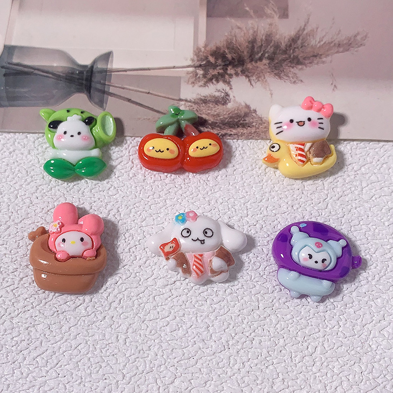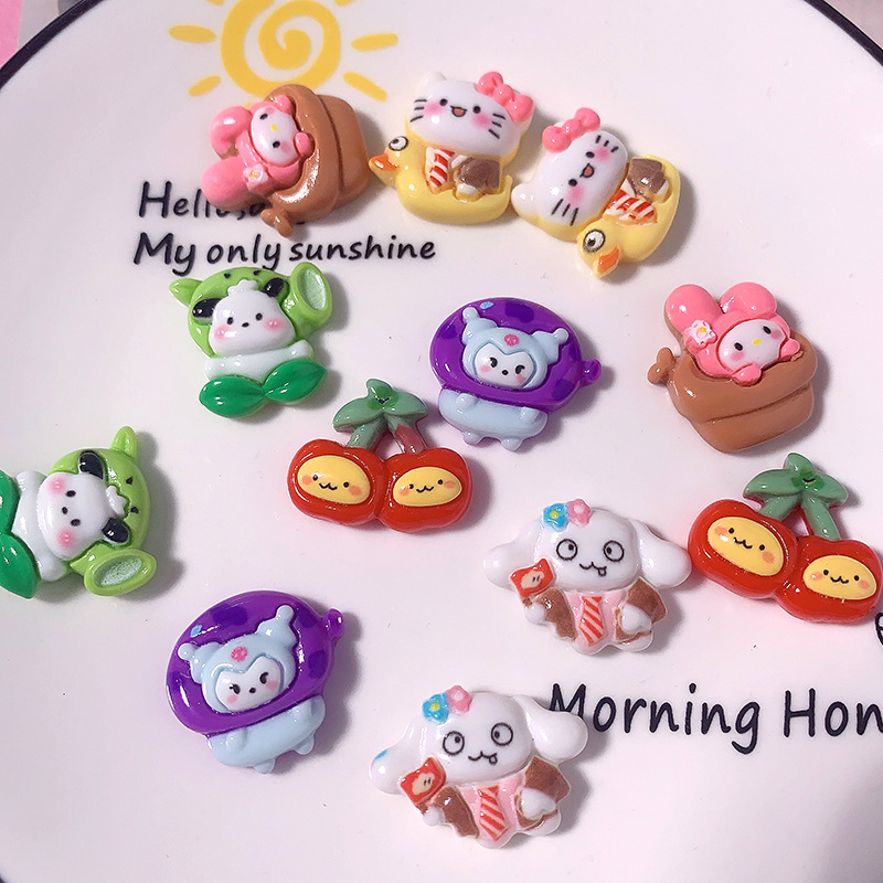 Nuevos dibujos animados Sanrio plantas DIY accesorios de resina crema pegamento para el cabello adornos de cabello hebilla de zapatos taza pegatinas accesorios hechos a mano