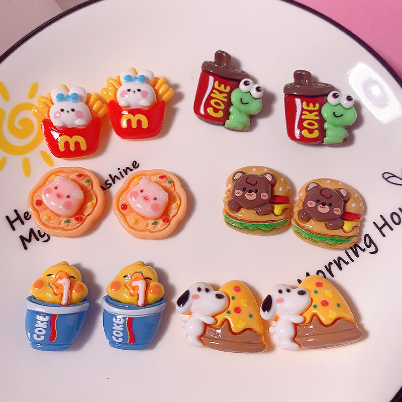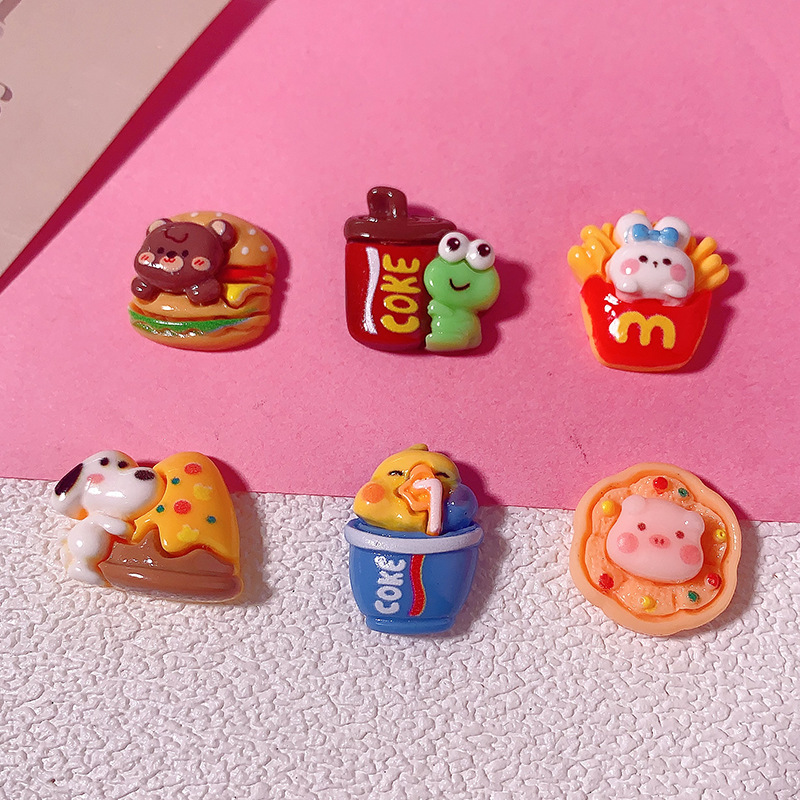 Nuevo oso de dibujos animados hamburguesas de alimentos para animales juegan accesorios de resina diy clip para el cabello de teléfono celular agujero de botón accesorios hechos a mano