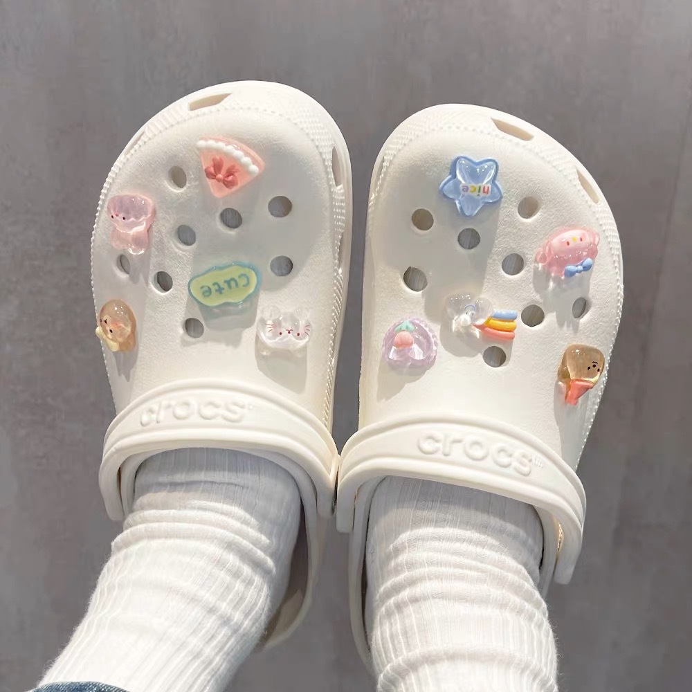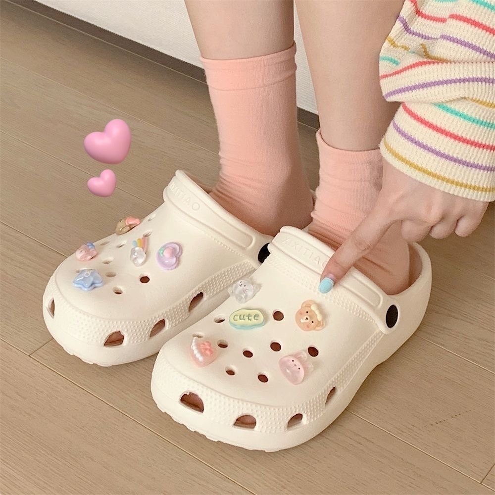 Nuevos dibujos animados arco iris oso agujero accesorios de zapatos Diy sigla estrella de cinco puntos arco iris zapatos flores accesorios botones de zapatos