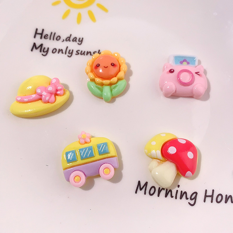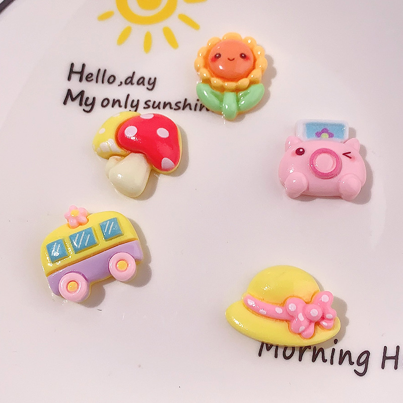 Nuevos dibujos animados hongos cámara cerdo diy accesorios de resina adornamiento de cabello pegamento de crema caja de teléfono móvil material de hebilla de zapatos hecha a mano