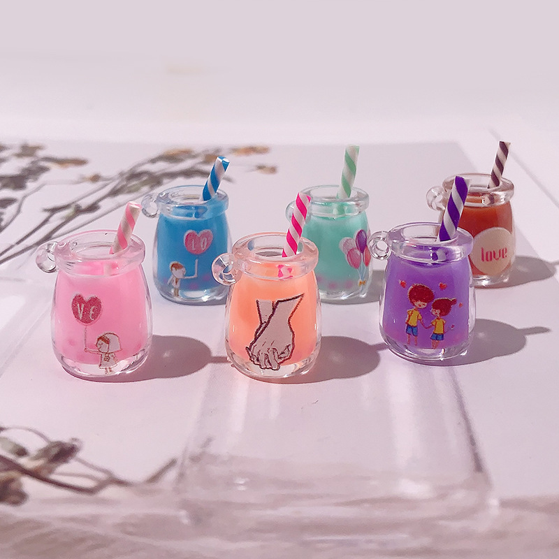 Nuevo transfronterizo nocturna taza de paja de té DIY amor diario llavero colgante papelería accesorios materiales