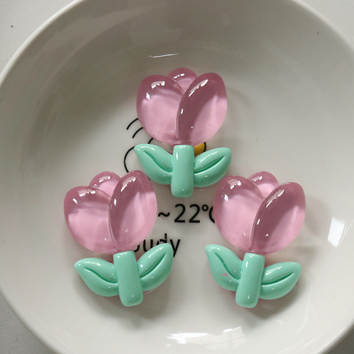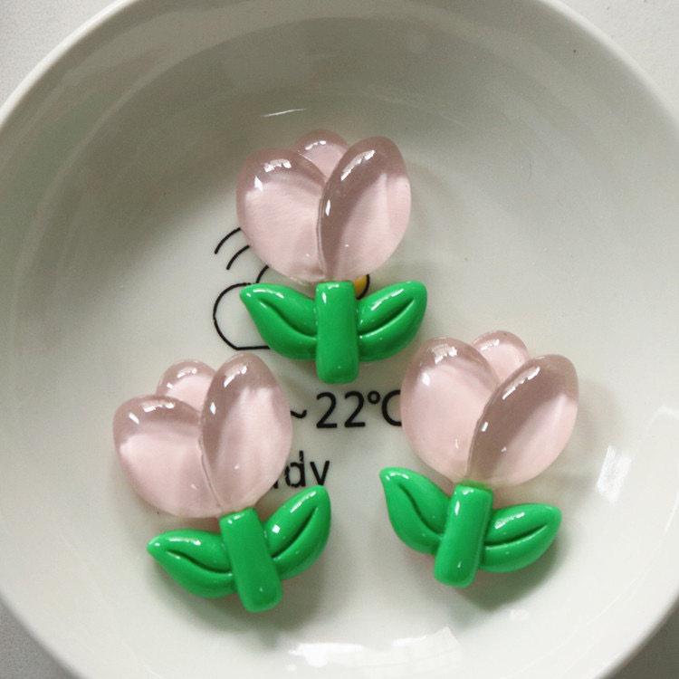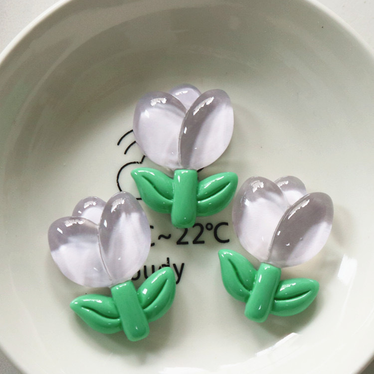 Transfronterizos hielo transparente tulipán accesorios de resina flor diy caja de papelería agujero perno de zapatos material de colgante de cabello