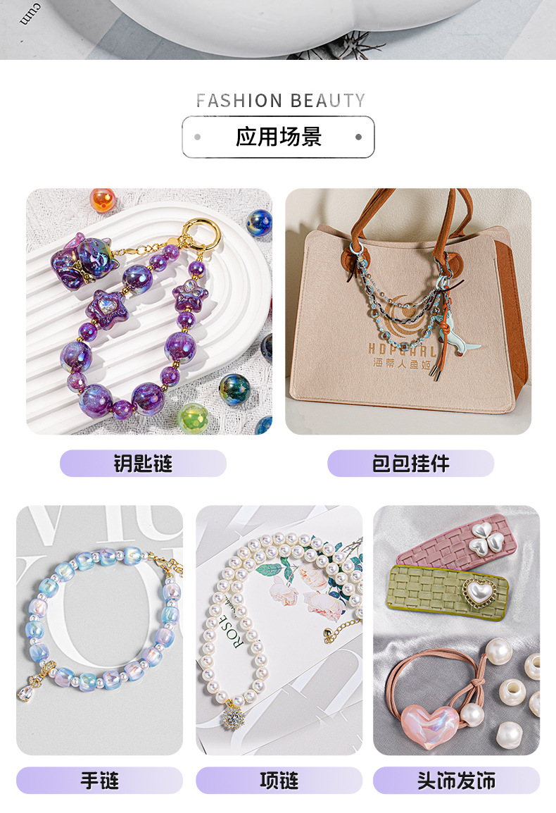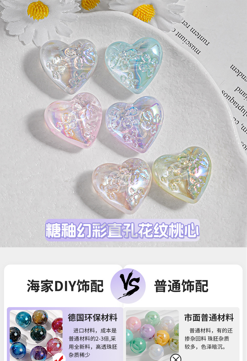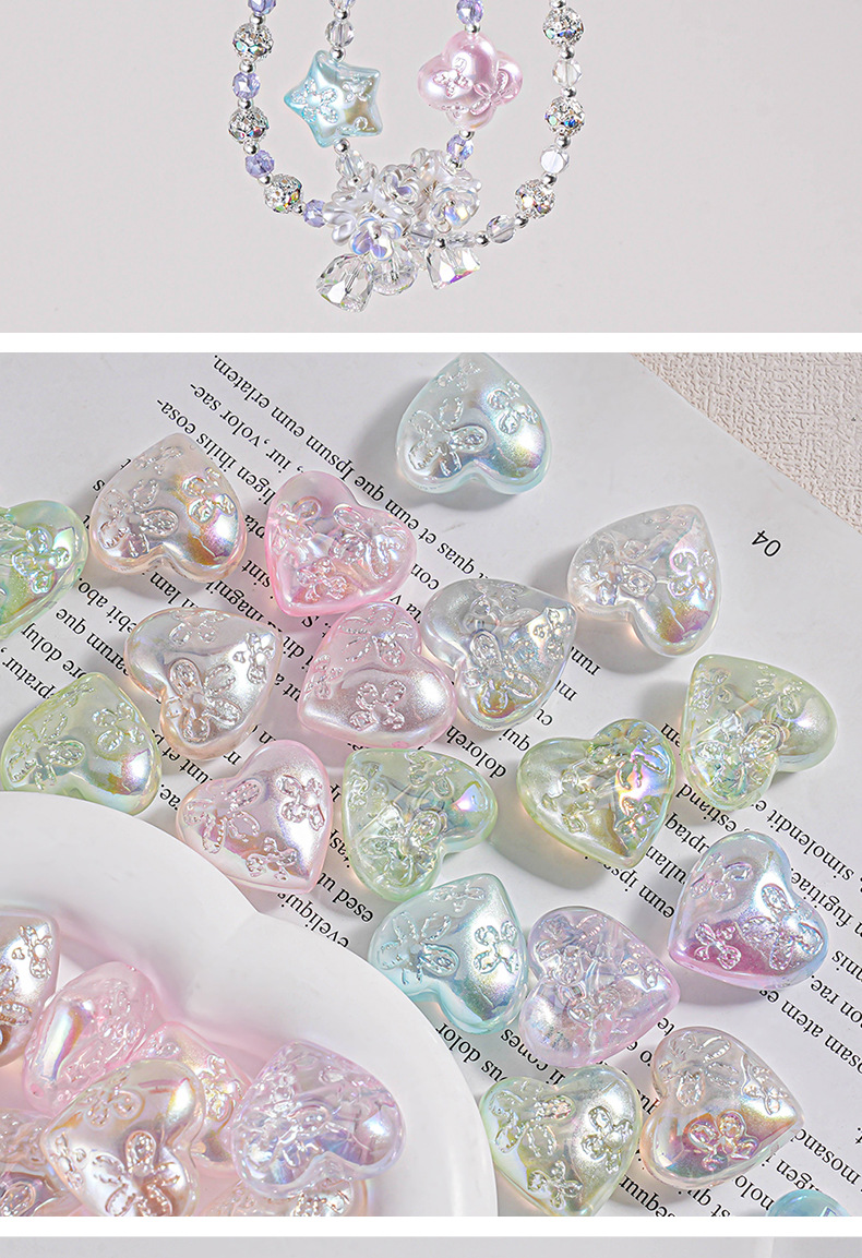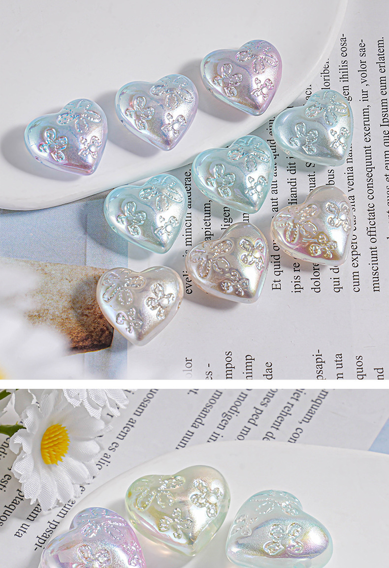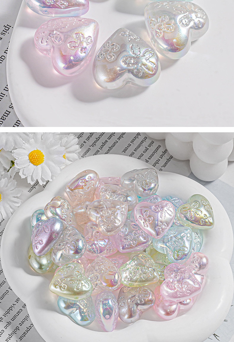 Haijia patrón chapado en color color mágico agujero pasante amor con cuentas cadena de teléfono móvil material de bricolaje cuentas sueltas en forma de corazón piezas pequeñas accesorios