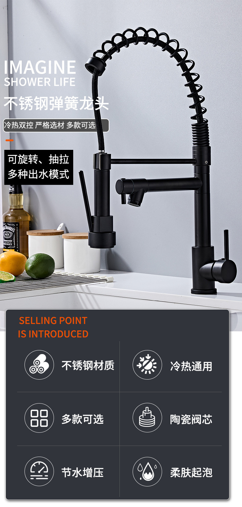 Grifos de extracción de cocina caliente y frío de doble control primavera grifo caliente y frío fregadero de acero inoxidable agujero único fabricante al por mayor transfronterizo