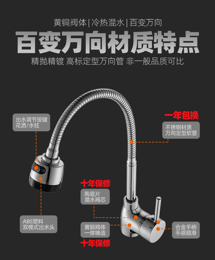 Grifos de cocina de color tubo de cuero universal rotativo de agua caliente y fría mezcla lavabo de verduras agujero único comercio exterior transfronterizo ruso