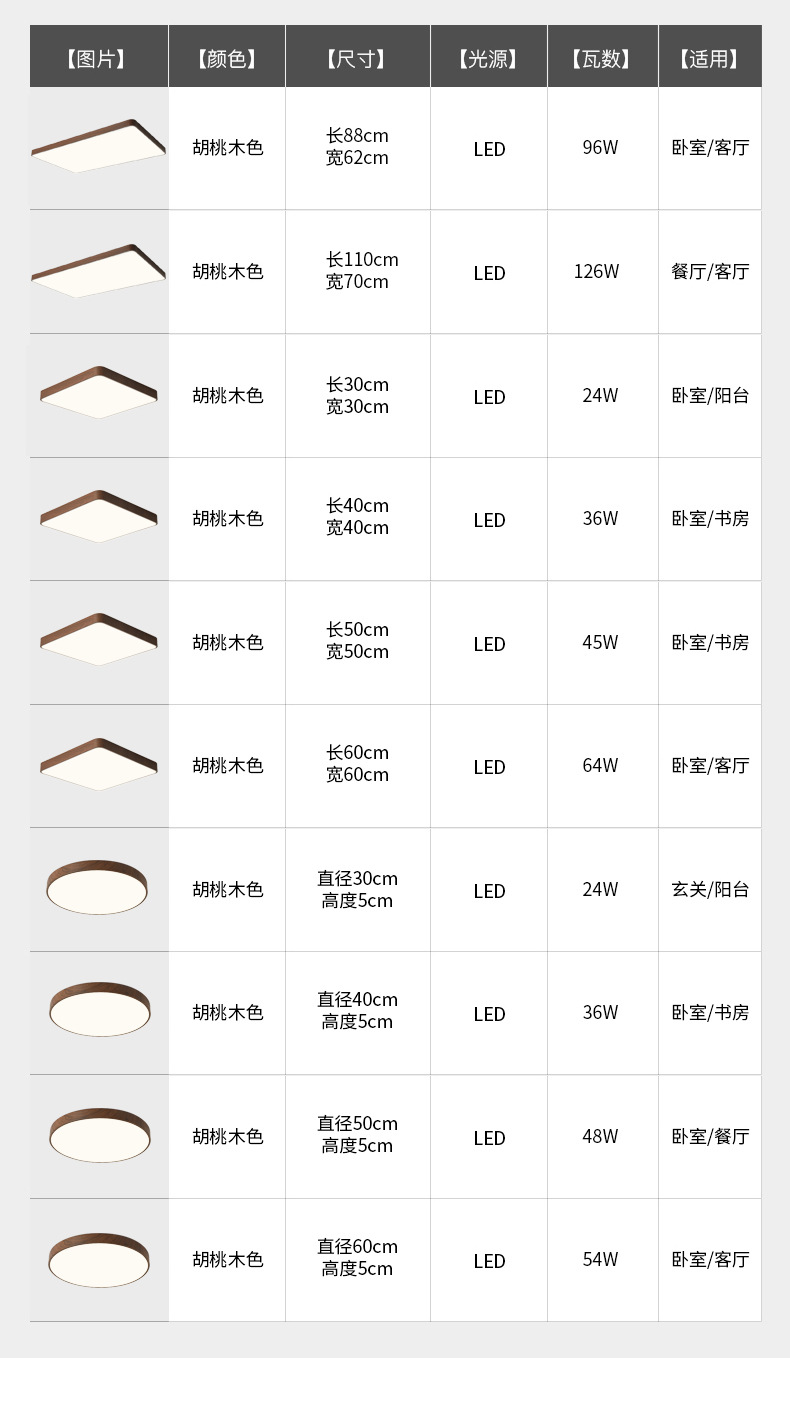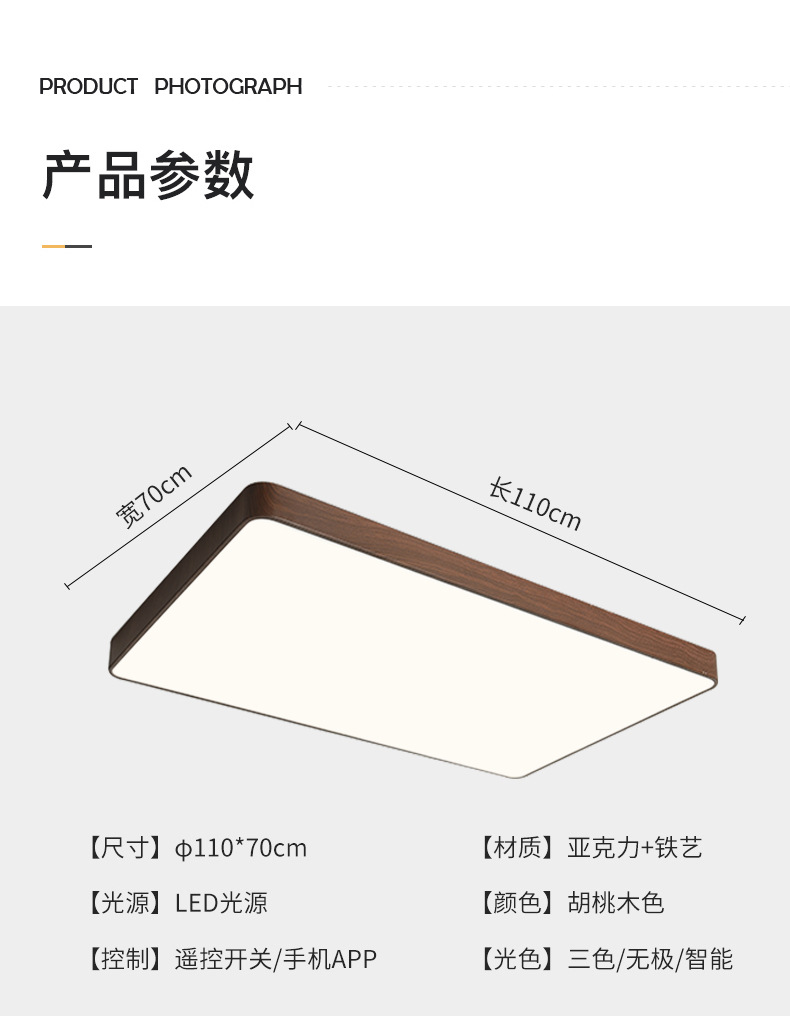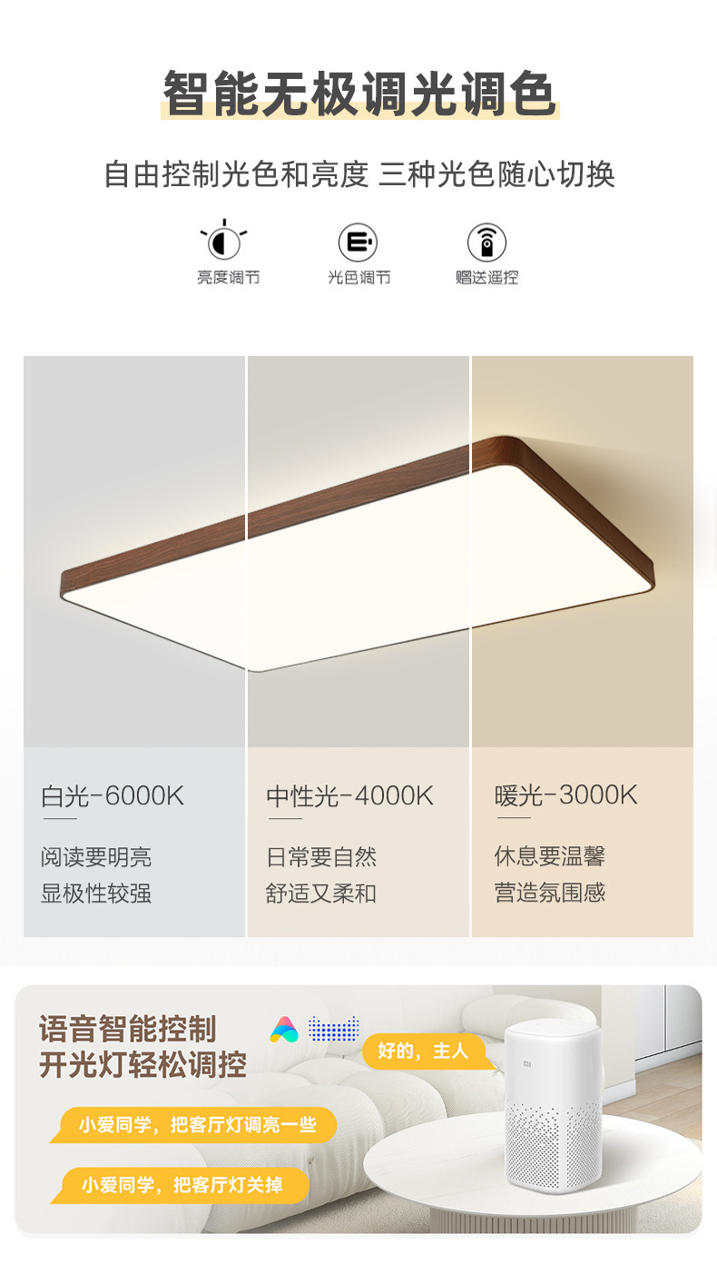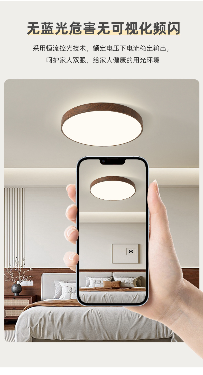 Luz de techo inteligente de protección de ojos de espectro completo, lámpara de salón de nuez, sala de estar, sala de estudio, comedor, balcón, dormitorio, nueva lámpara de casa
