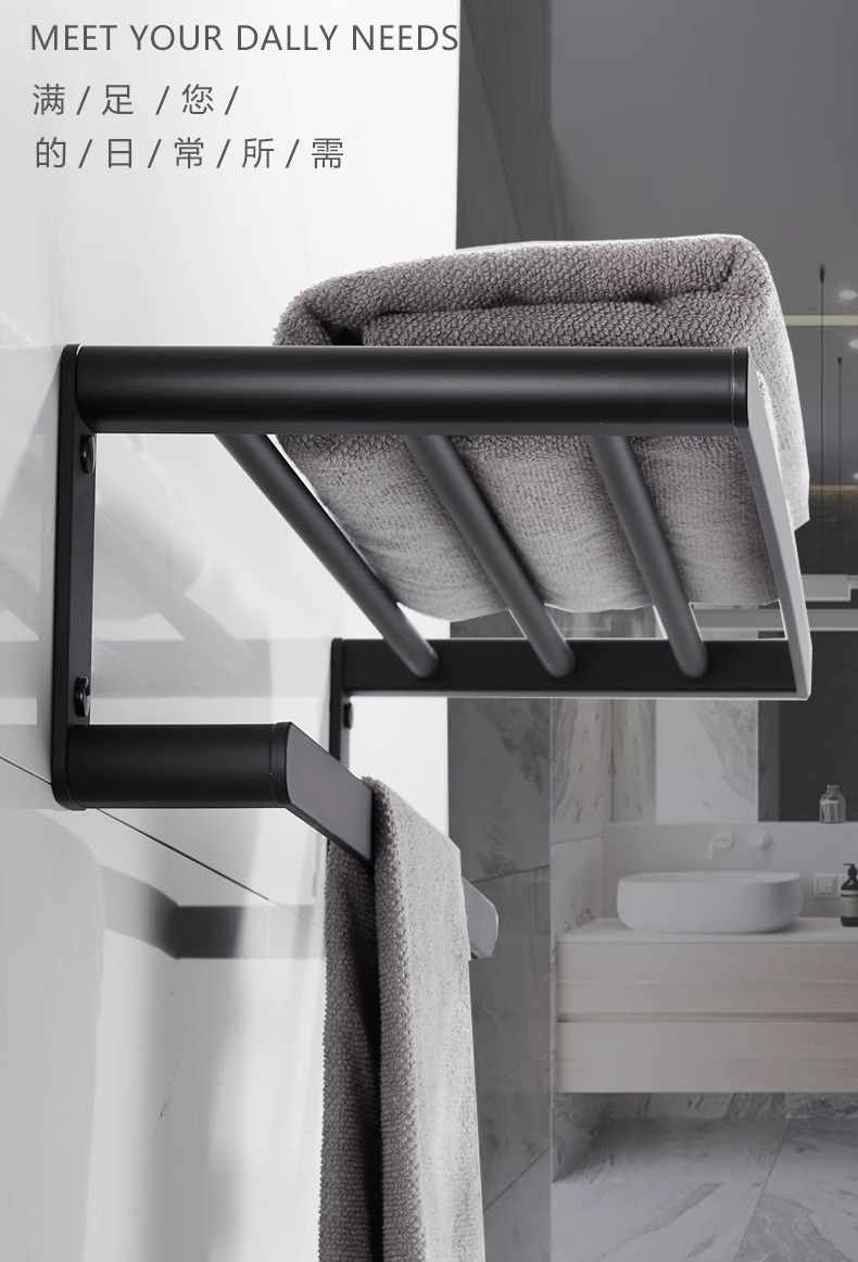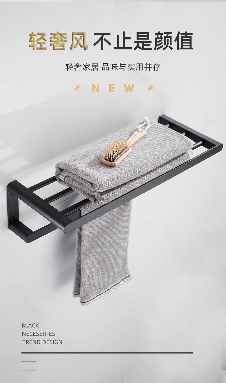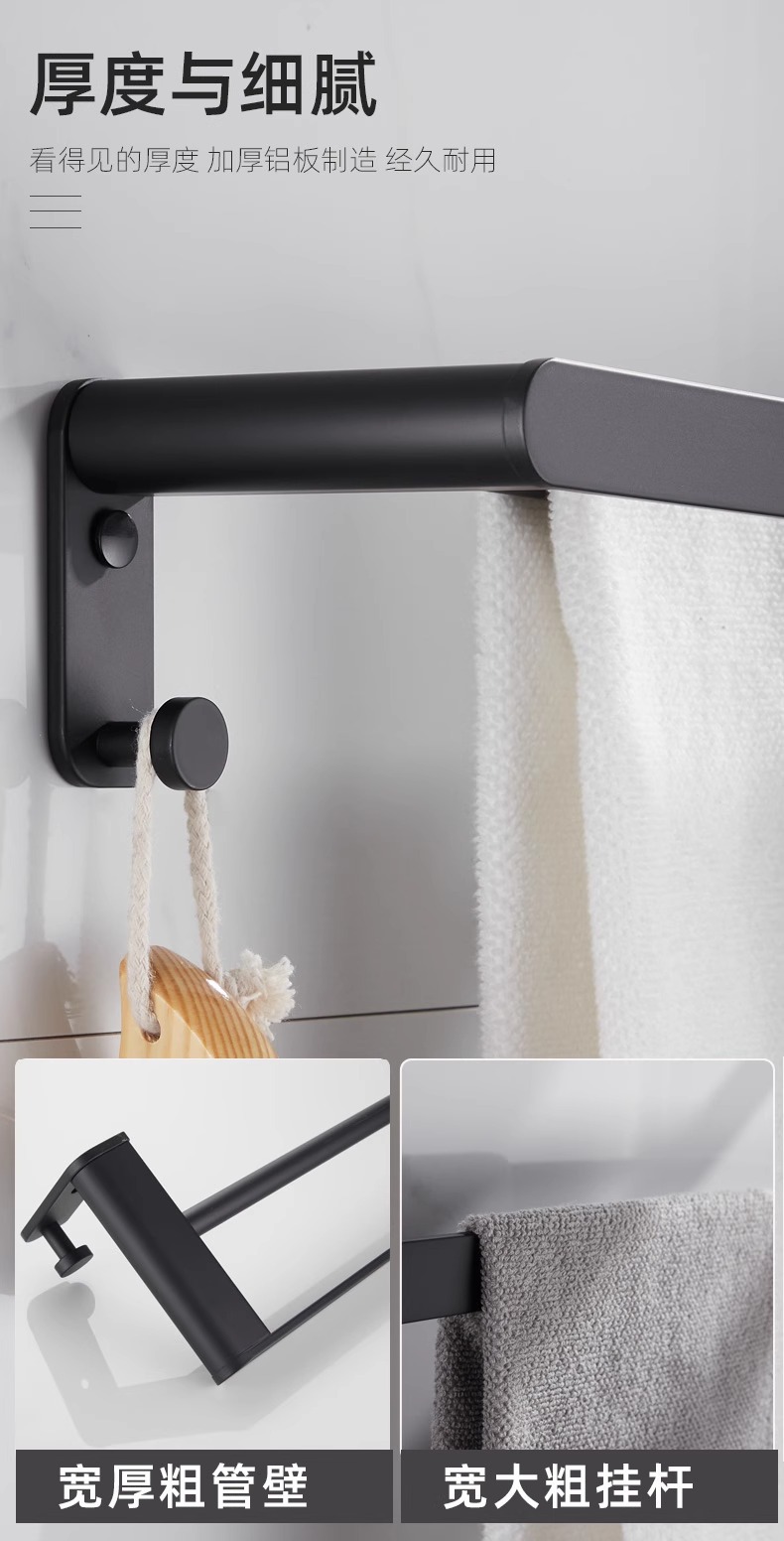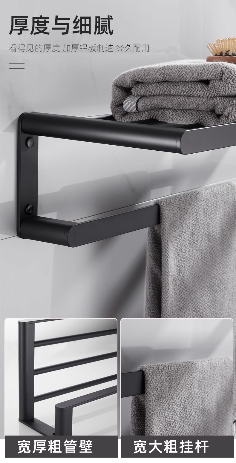 Rack de toallas de baño negras estantería espacio de aluminio grueso rack de toallas de baño conjunto de colgantes de baño sin perforación