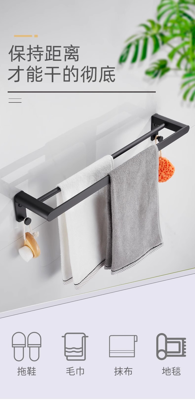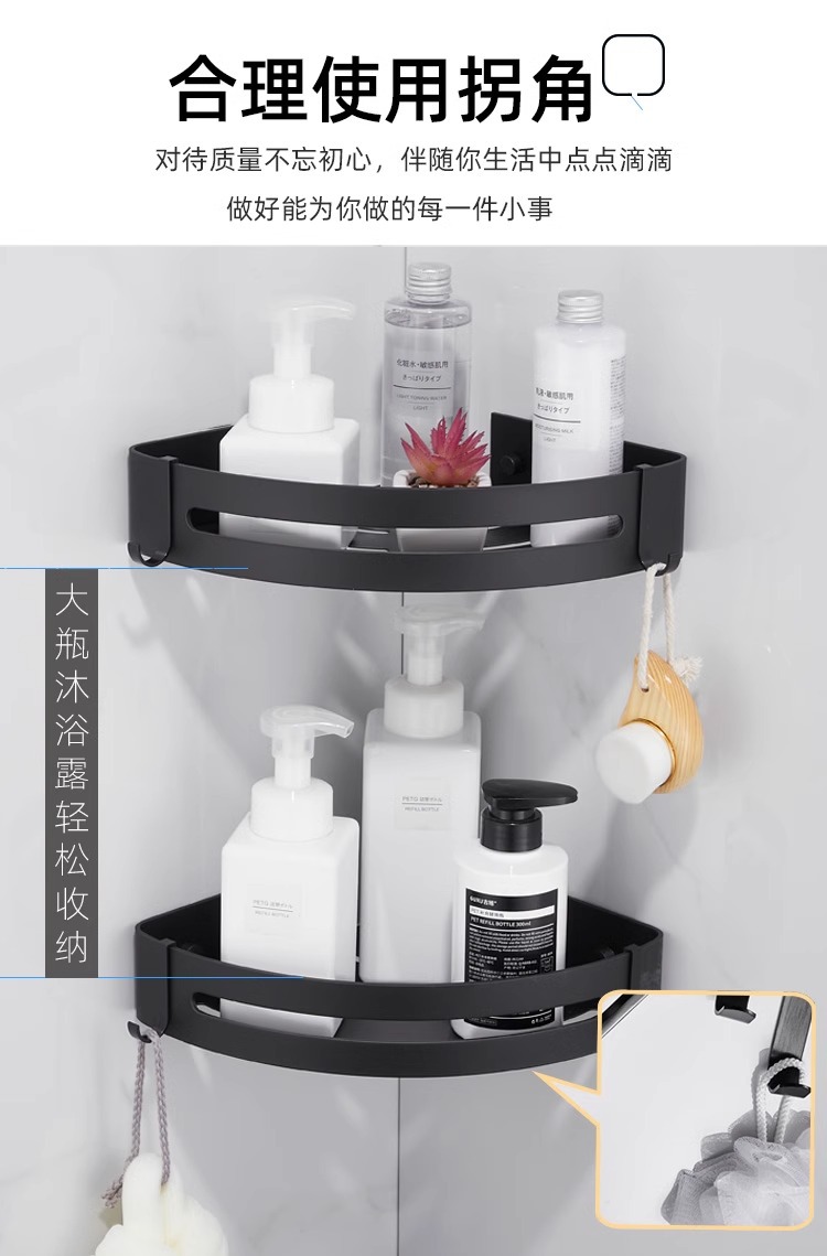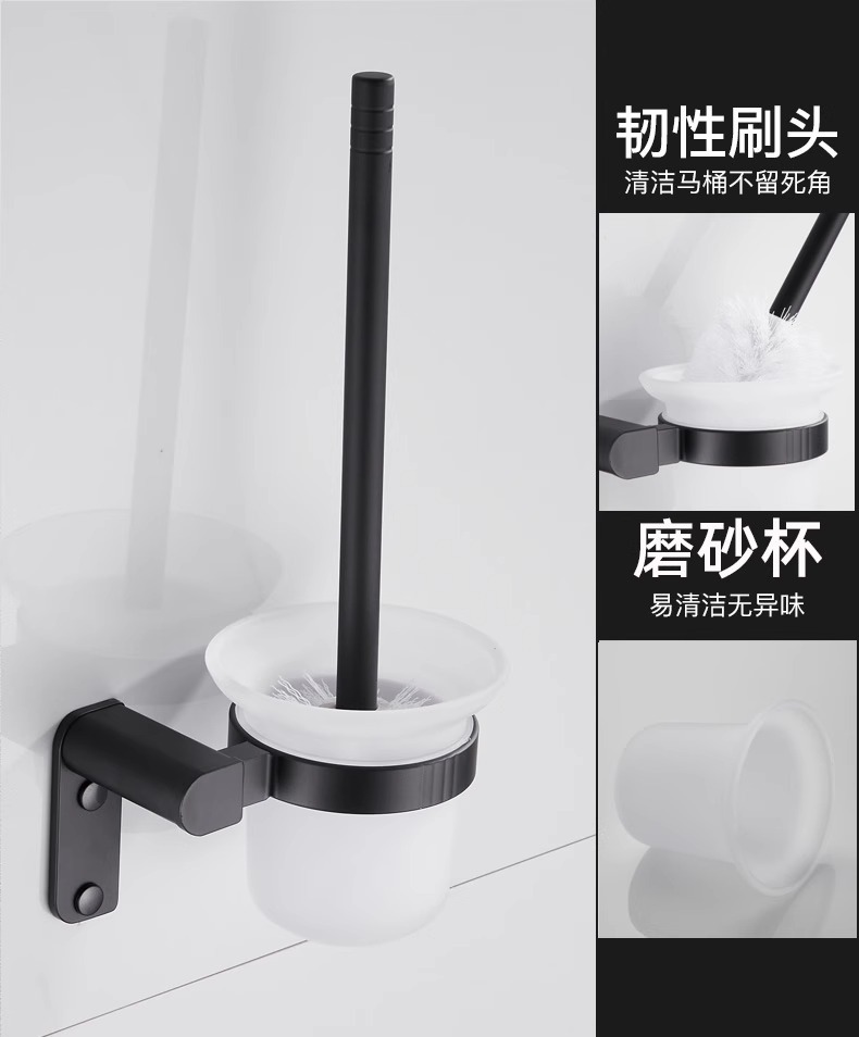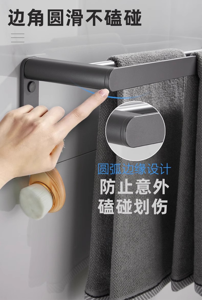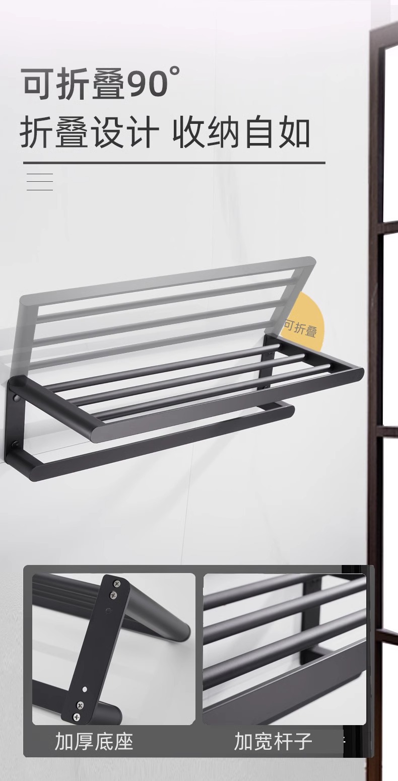 Rack de toallas de baño negras estantería espacio de aluminio grueso rack de toallas de baño conjunto de colgantes de baño sin perforación
