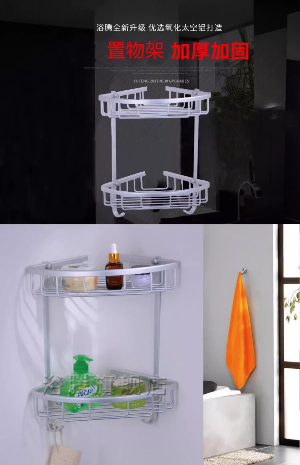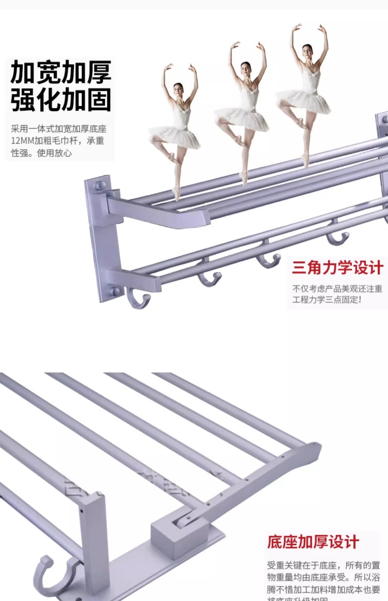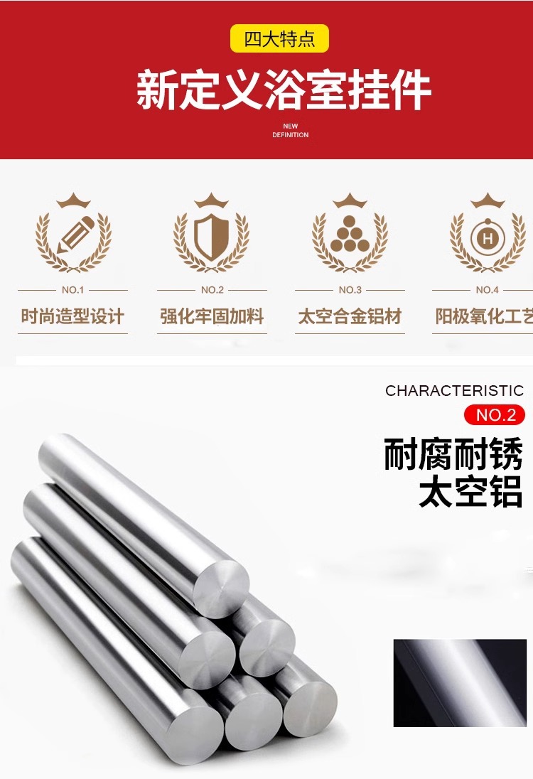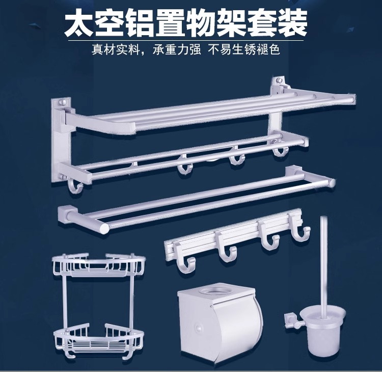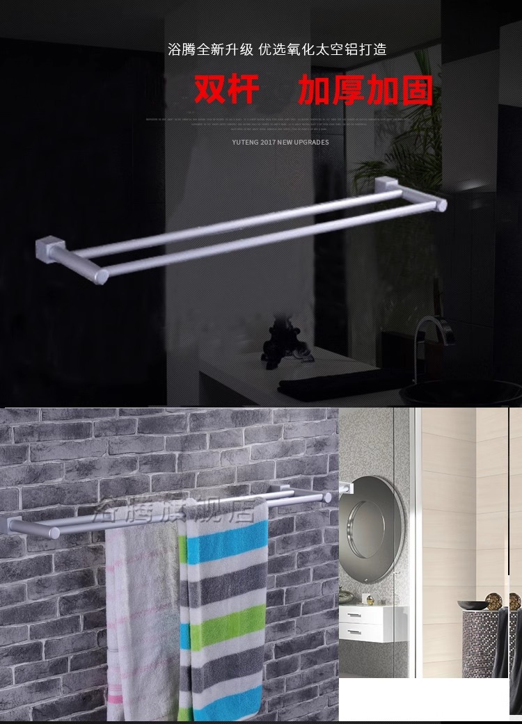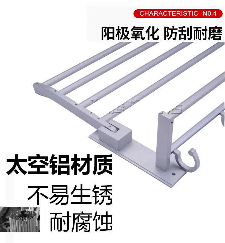 Espacio de aluminio doble capa plegable toallas móviles estante de toallas de baño sin perforación estante de ingeniería al por mayor