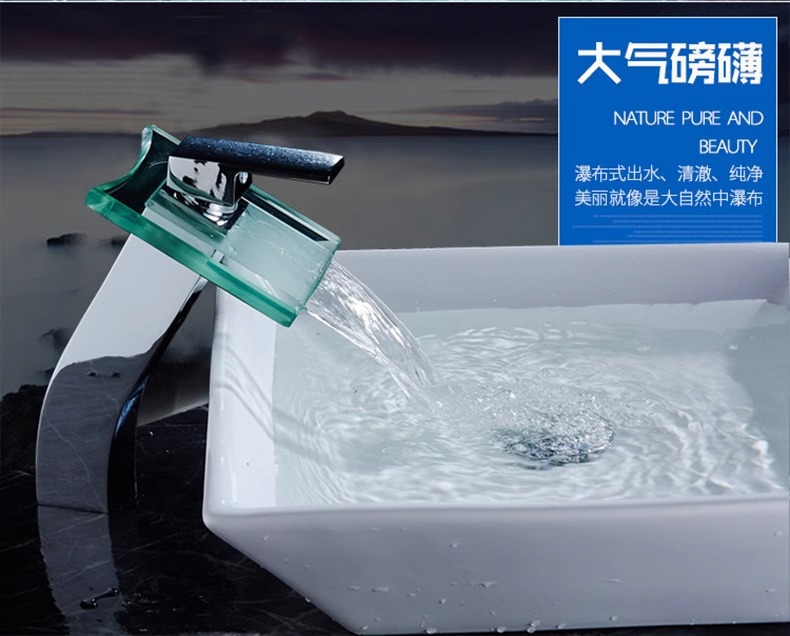 Grifos de agua de cascada de vidrio de cobre caliente y frío bañera fábrica de baño directo de comercio exterior transfronterizo para agua de cascada