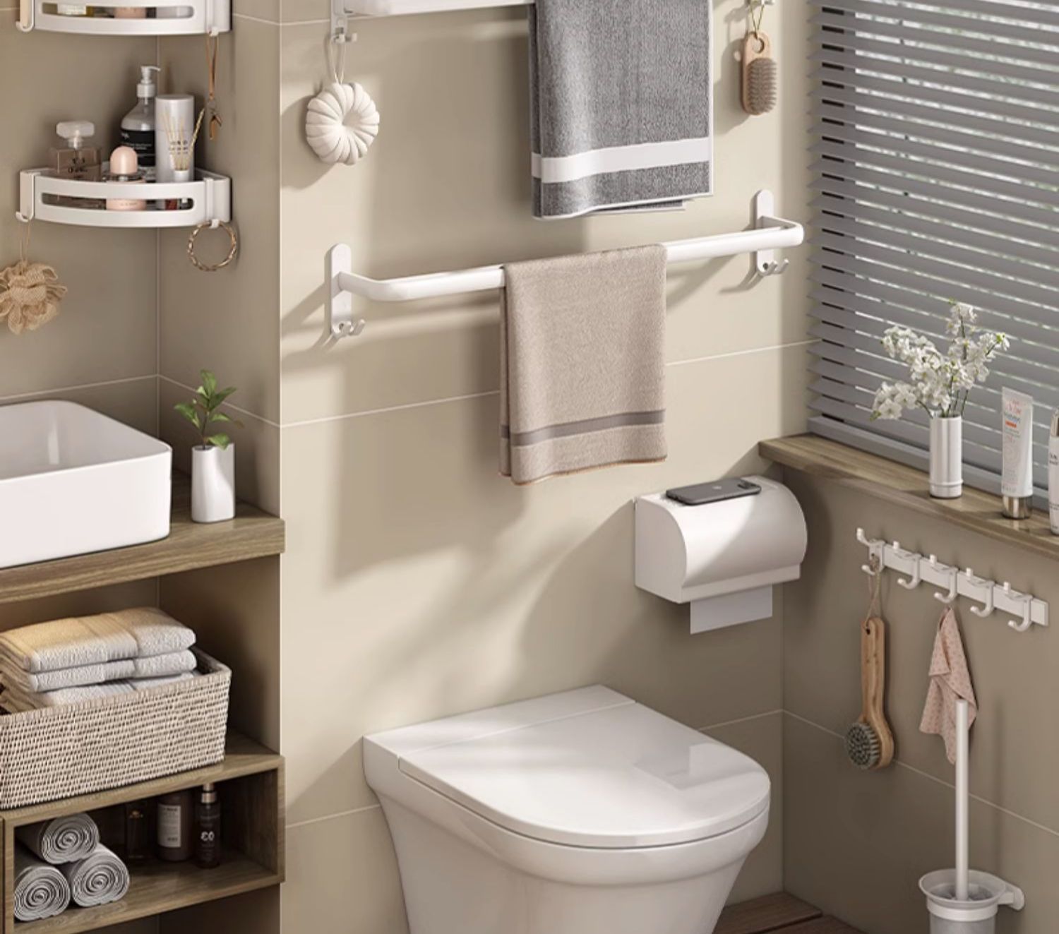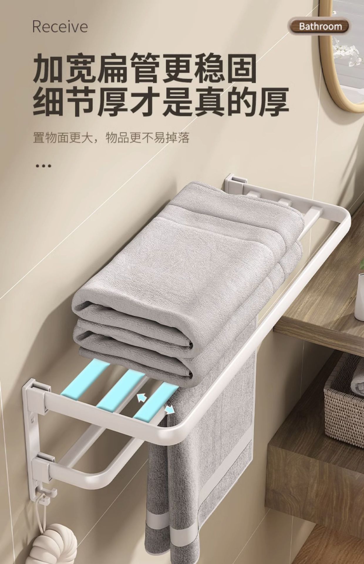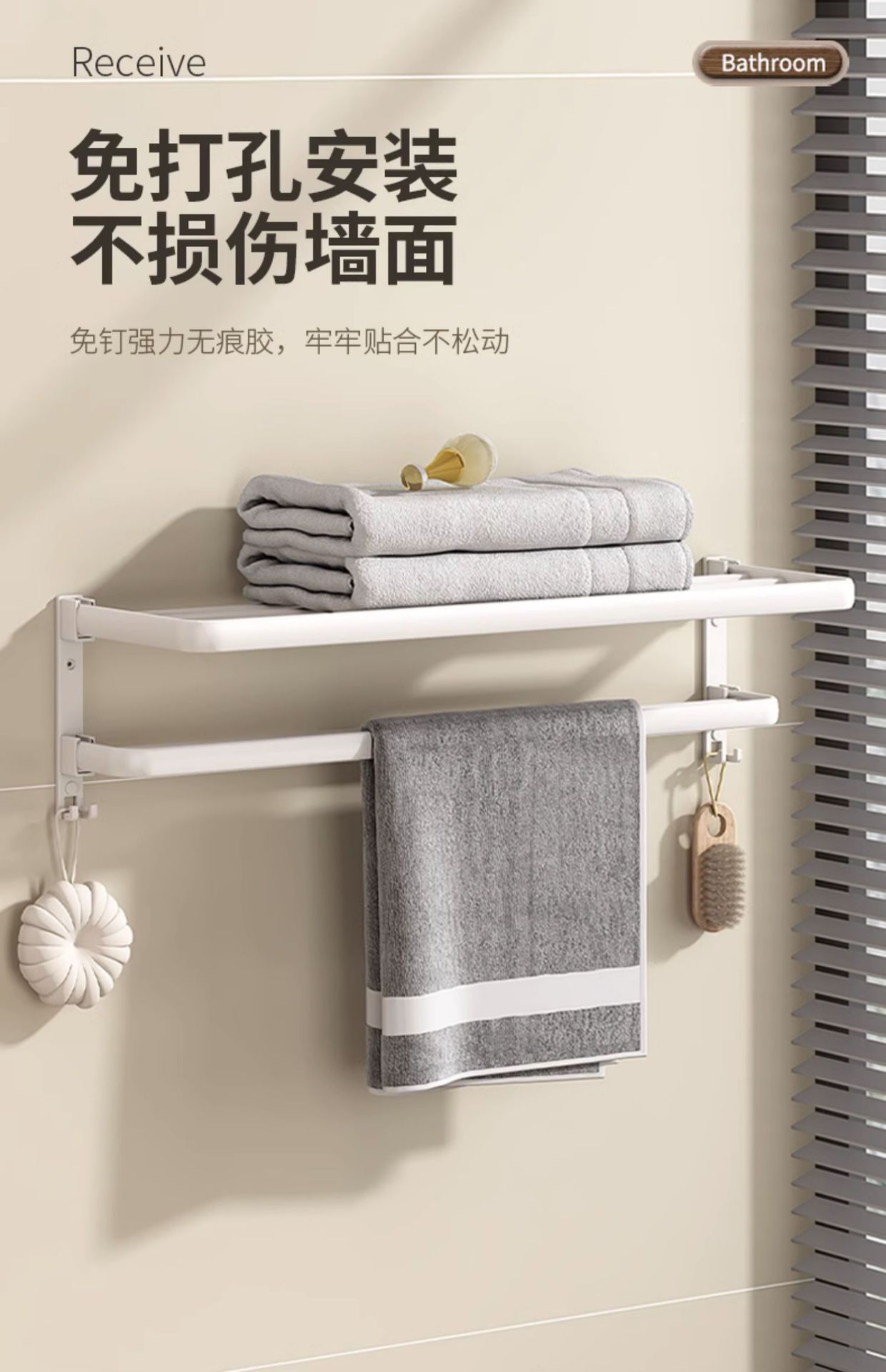 Estante de toallas blancas estantes de toallas sin perforación para el hogar espacio de aluminio para el baño plegable doble barra de toallas
