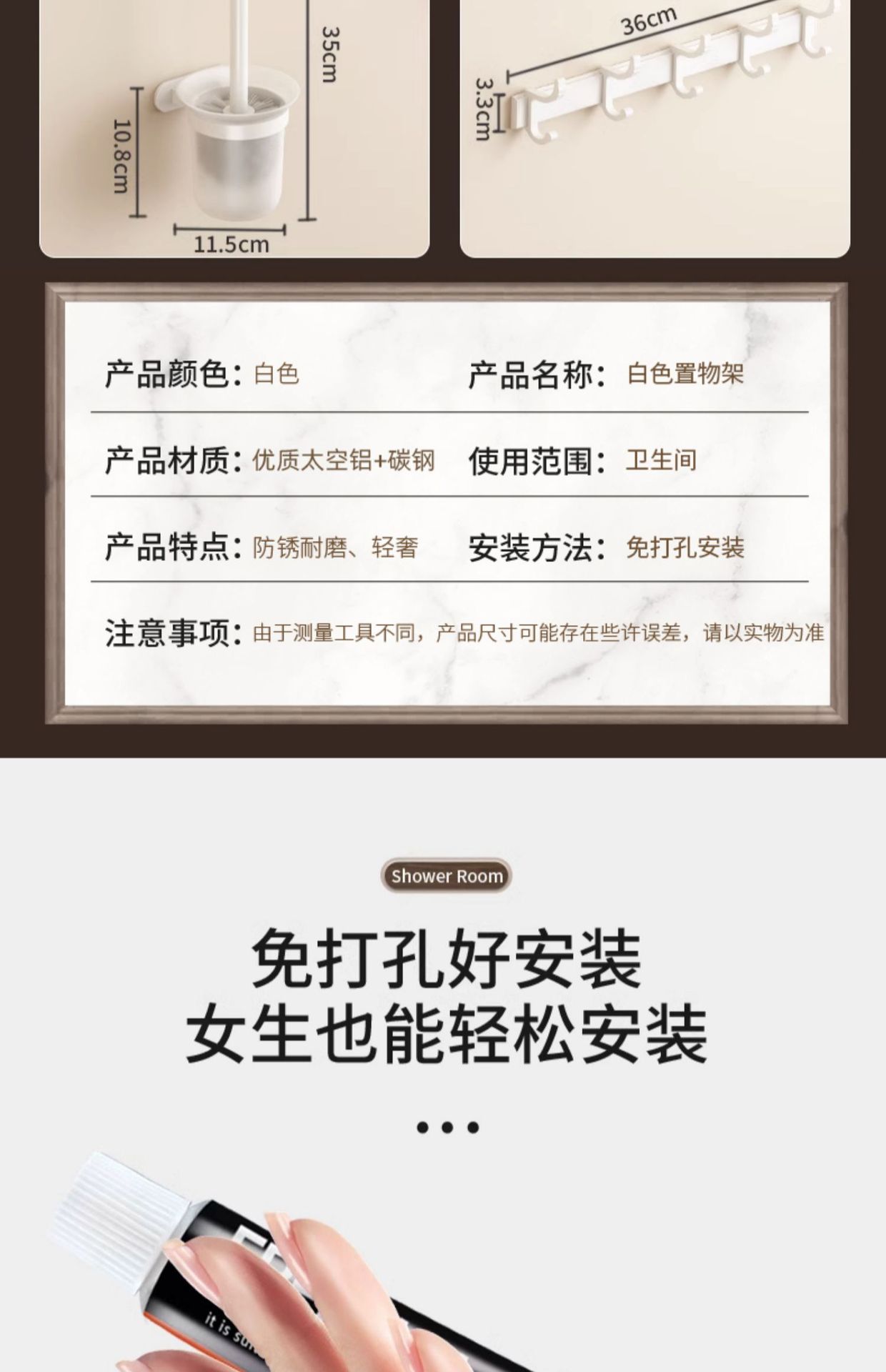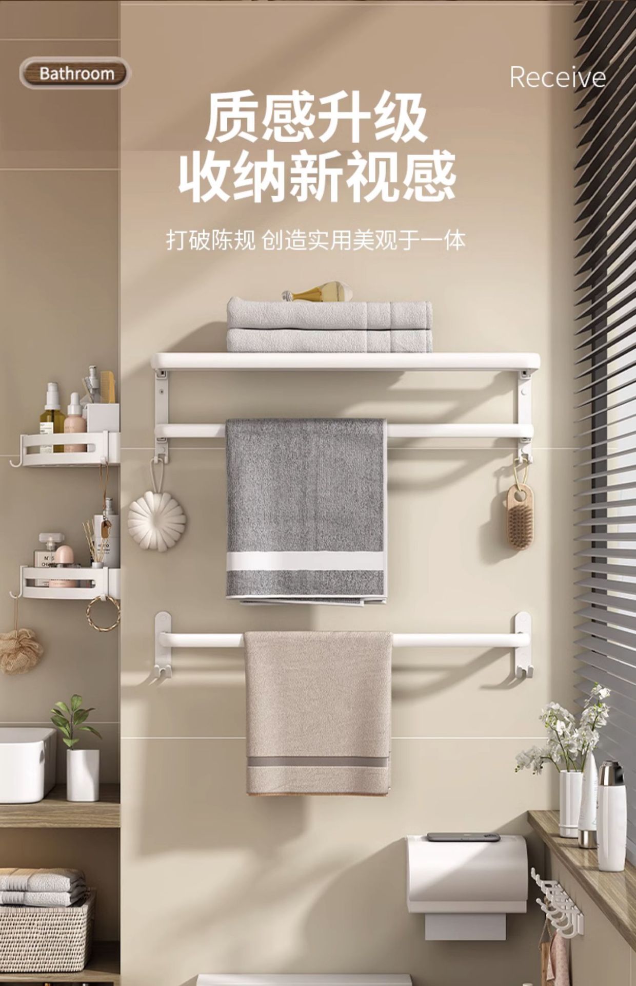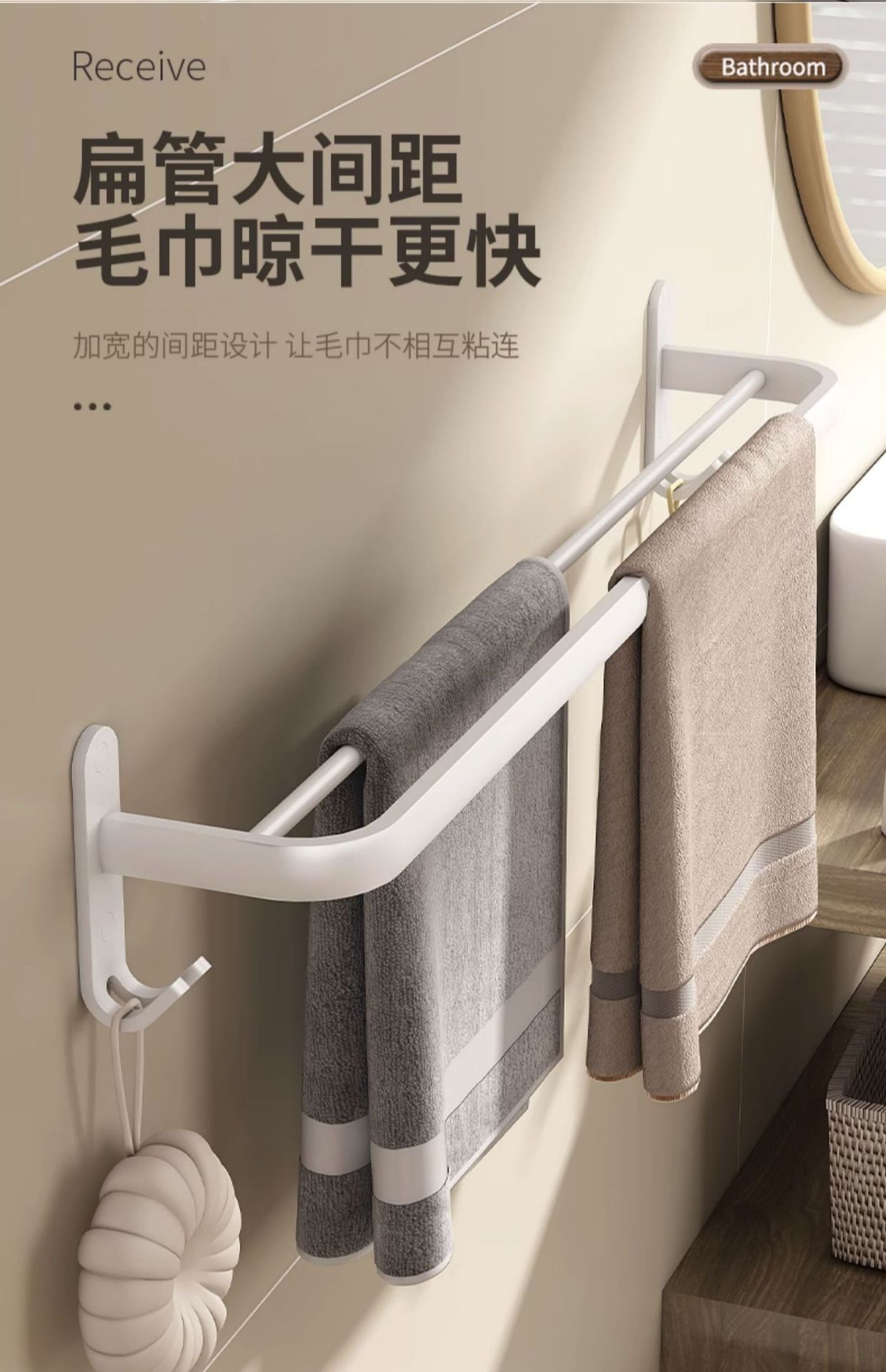 Estante de toallas blancas estantes de toallas sin perforación para el hogar espacio de aluminio para el baño plegable doble barra de toallas