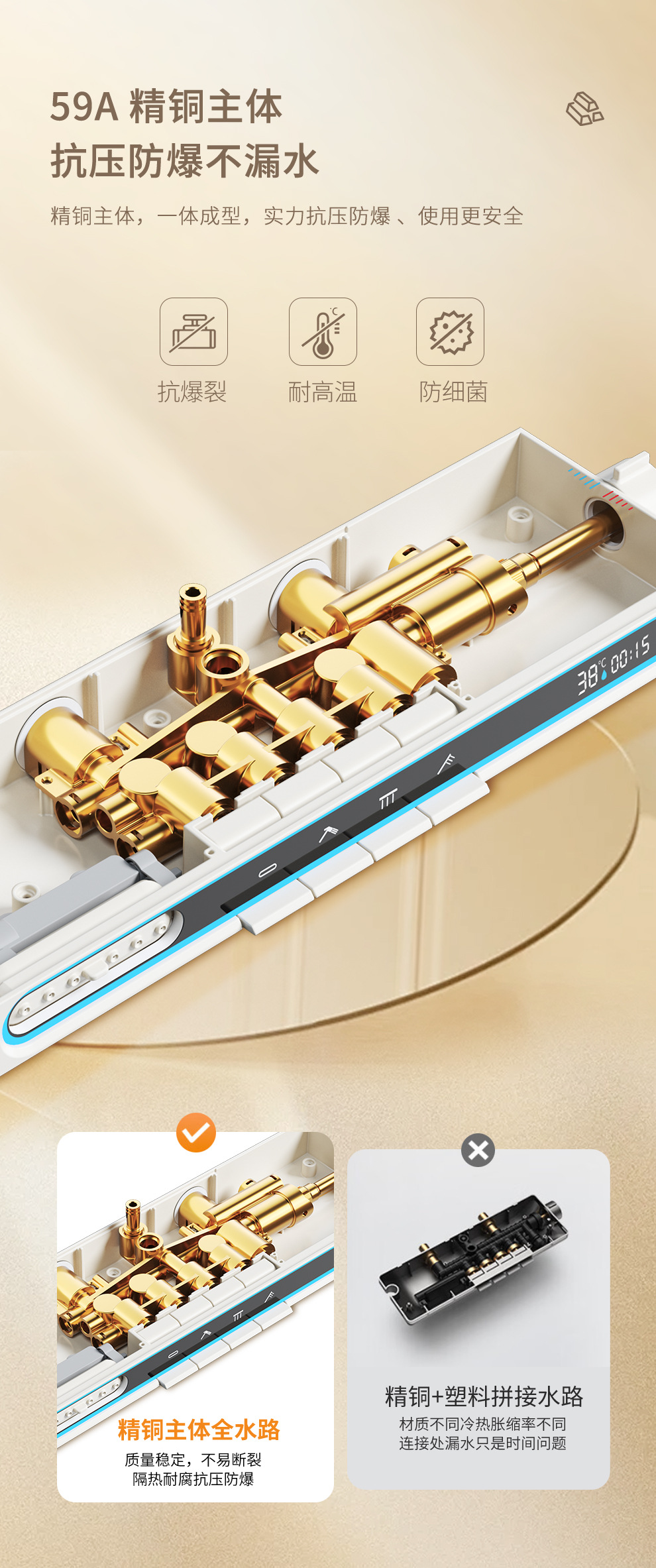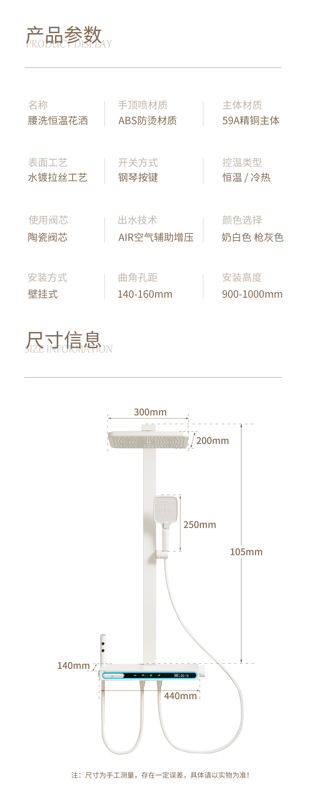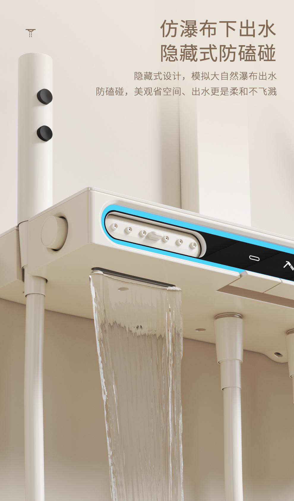 Ducha de viento crema blanco conjunto de ducha de temperatura constante ambiente inteligente lámpara de tubo cuadrado elevable baño lluvia de cobre