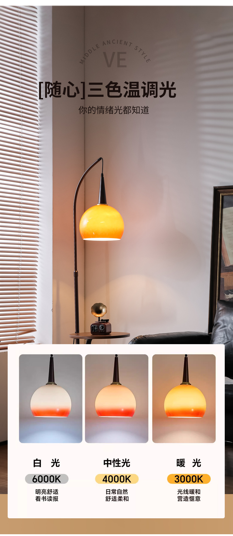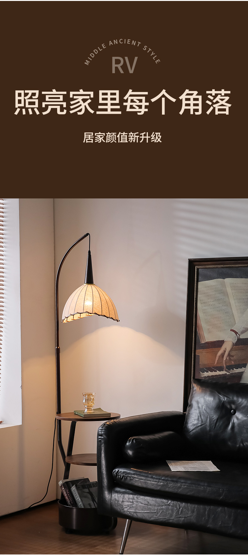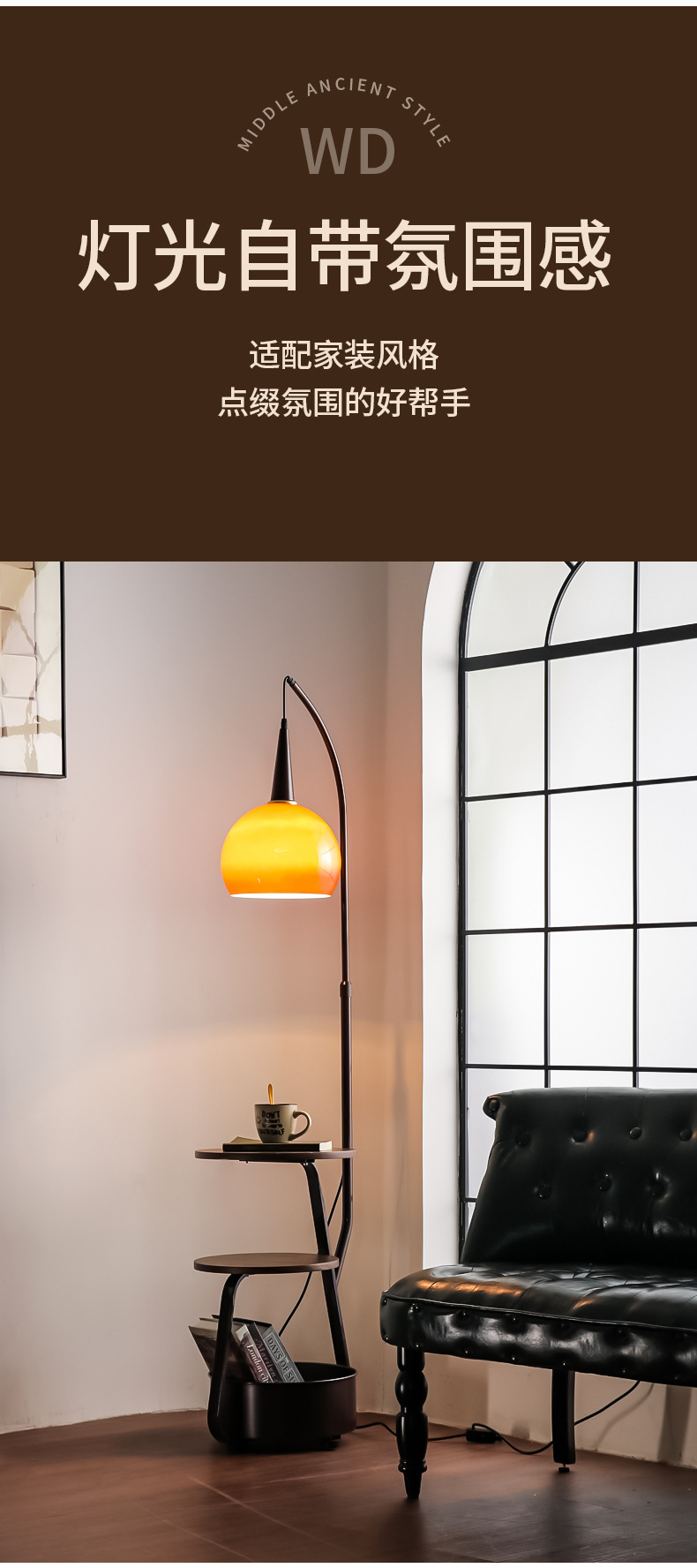 2024 nueva función de almacenamiento, lámpara de pie, lámpara de pomelo integrada, sala de estar, sofá, atmósfera, mesa de centro, lámpara de pesca