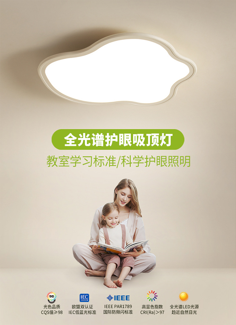 Lámpara de techo de nube, espectro completo, protección ocular, lámpara Zhongshan ultrafina sin costuras, lámpara de habitación de dormitorio principal para niños modernos creativos