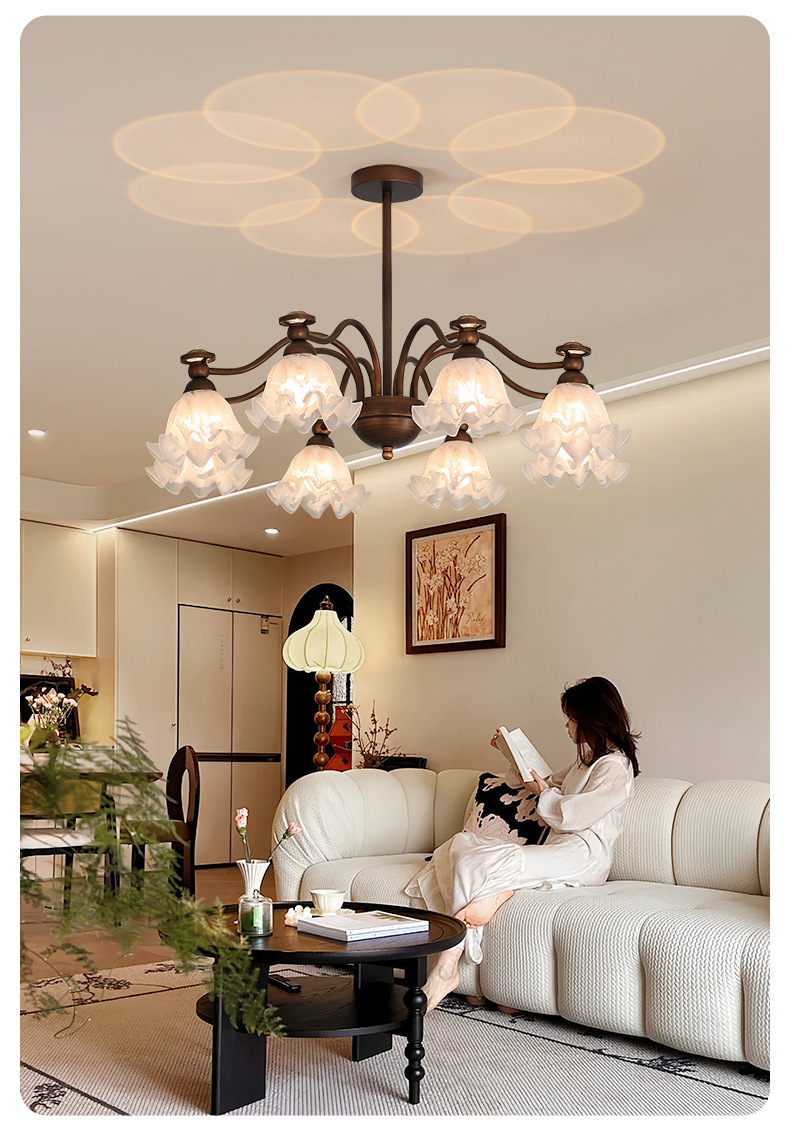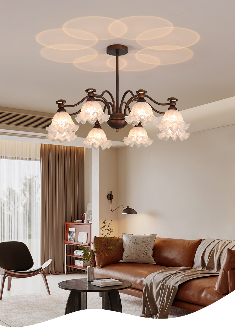 Lámpara de viento retro americana medieval pastoral orquídea flores lámpara de sala de estar negro dormitorio principal lámpara de comedor iluminación de atmósfera