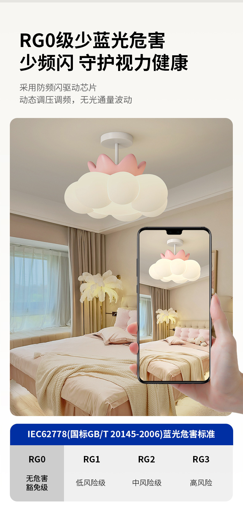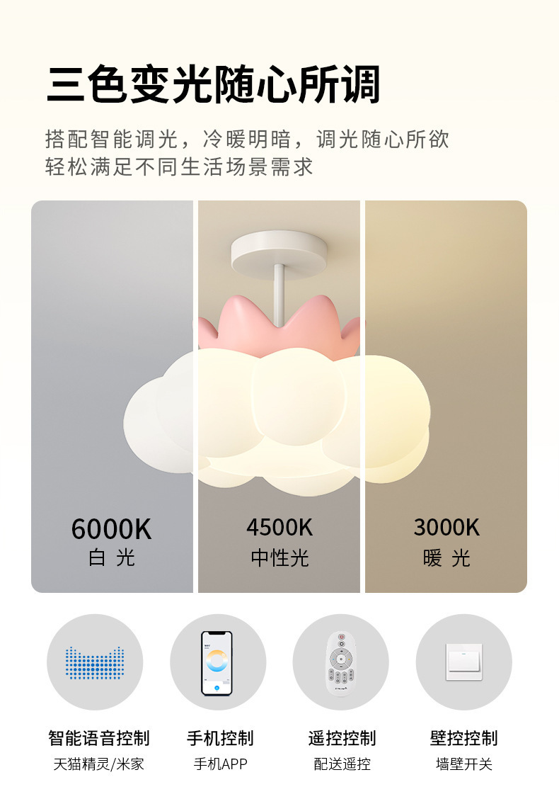 Personalidad nórdica, luz de techo de nube creativa, lujo ligero, sala de estar simple, sala de estudio, dormitorio, lámpara de protección ocular cálida de espectro completo
