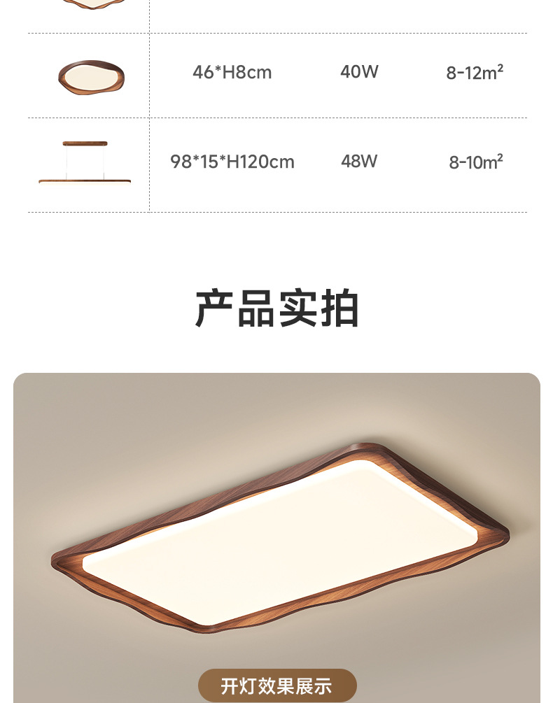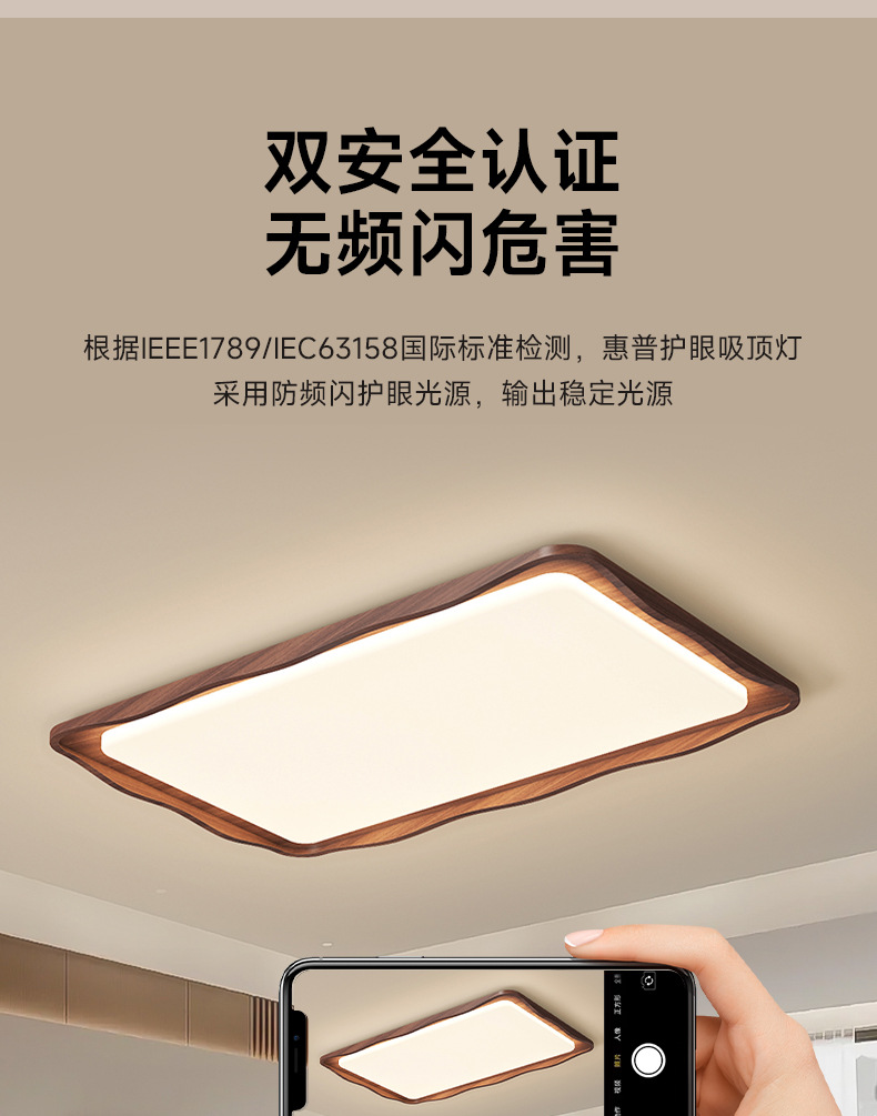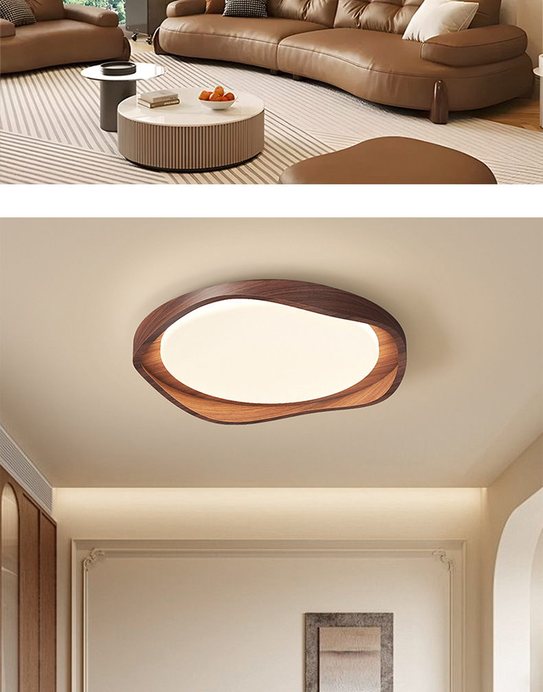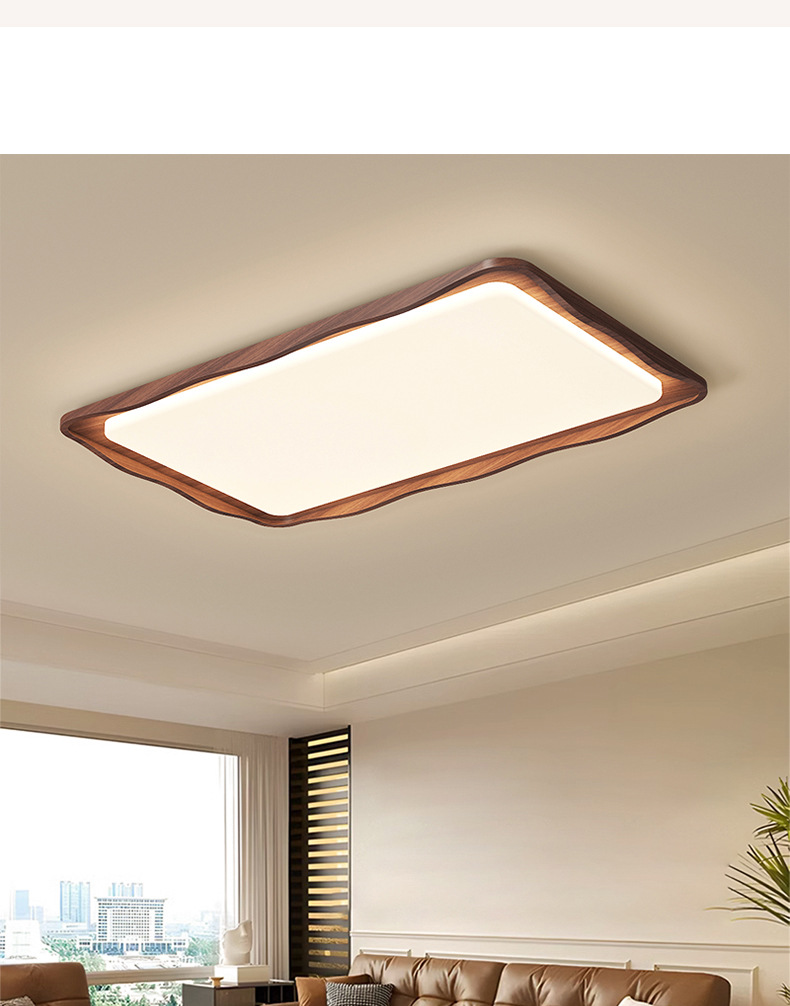 2025 nueva luz de techo de sala de estar ondulada, color de nogal retro francés, luz de dormitorio de gama alta de espectro completo