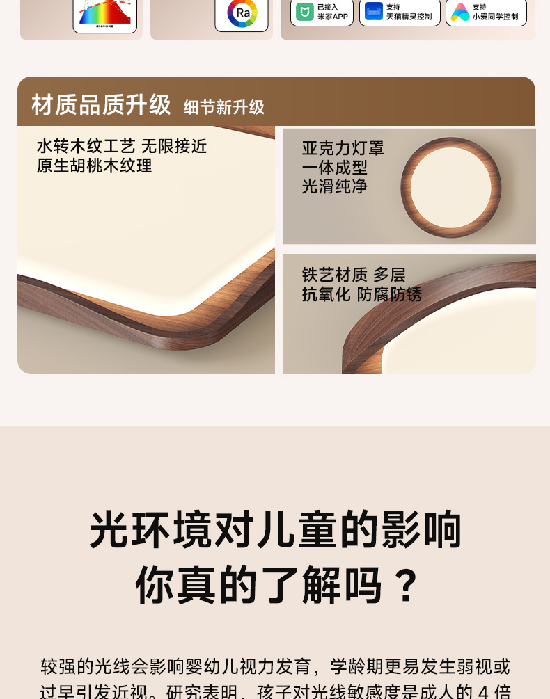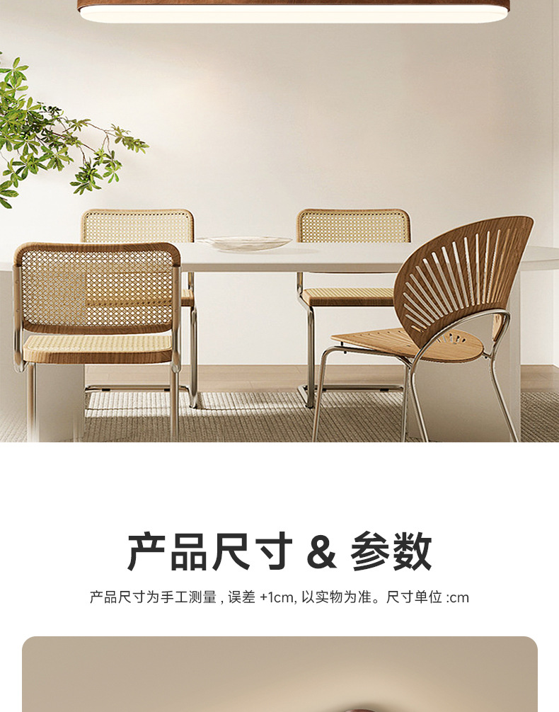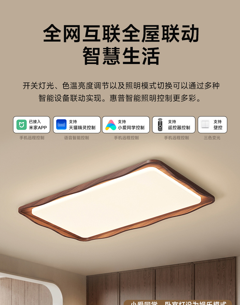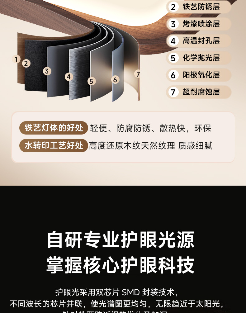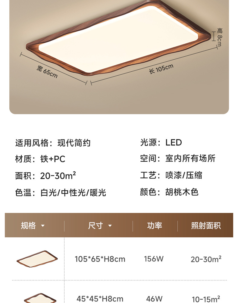 2025 nueva luz de techo de sala de estar ondulada, color de nogal retro francés, luz de dormitorio de gama alta de espectro completo