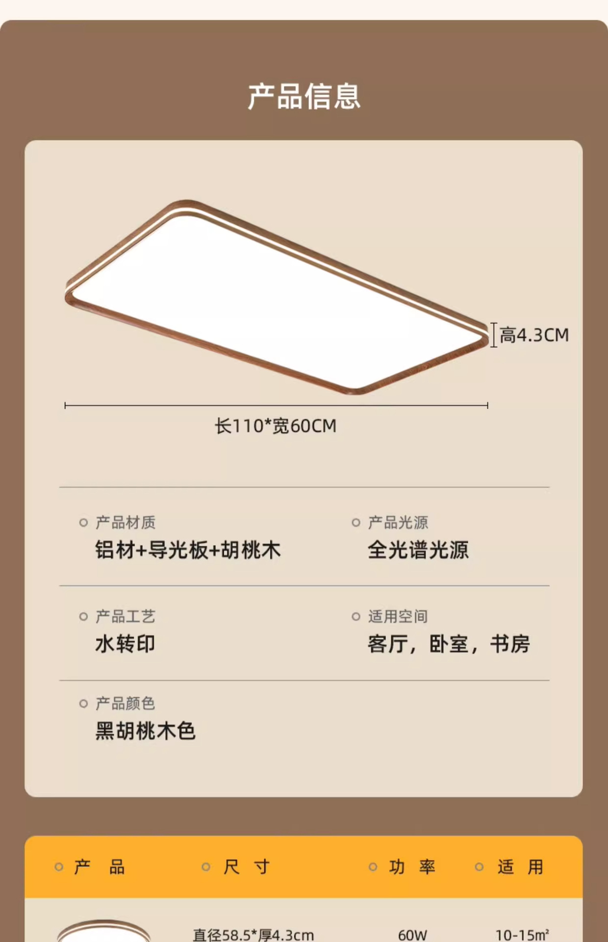 Paquete de toda la casa estilo antiguo ultra delgado sala de estar sala de estar simple lámpara de techo de patrón de nuez Guangdong Zhongshan