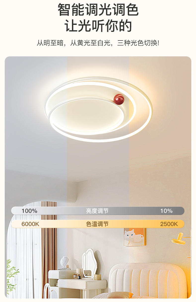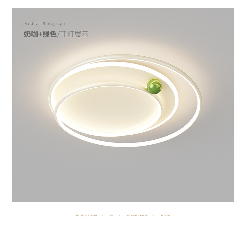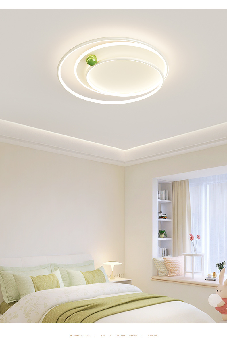 Lámpara de dormitorio, personalidad simple moderna, anillo, lámpara de habitación de frijol de leche pequeña, protección ocular de espectro completo, lámpara de techo de estudio del dormitorio principal