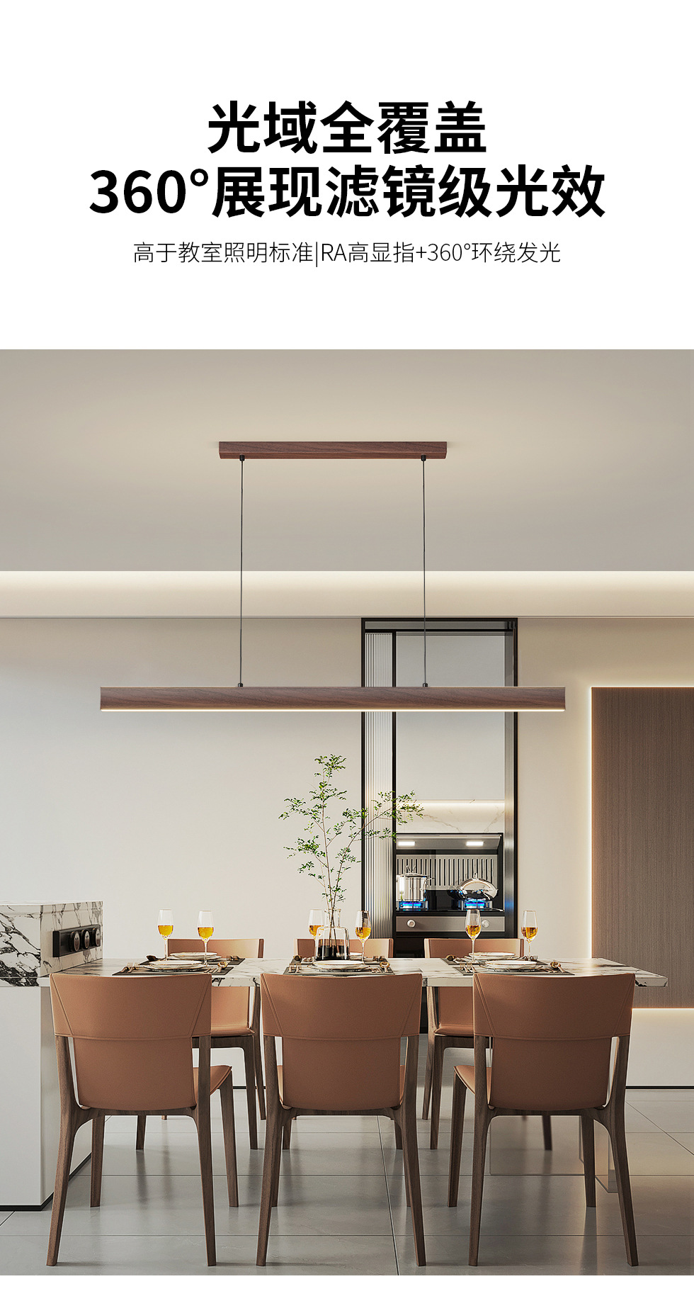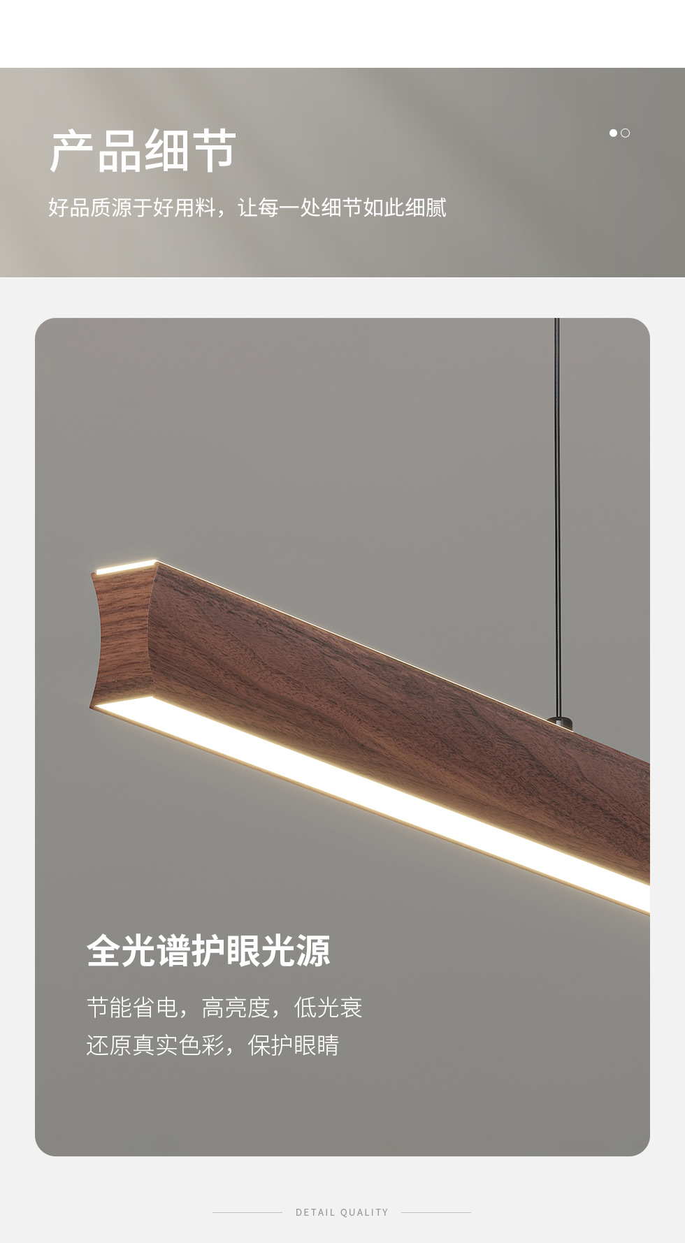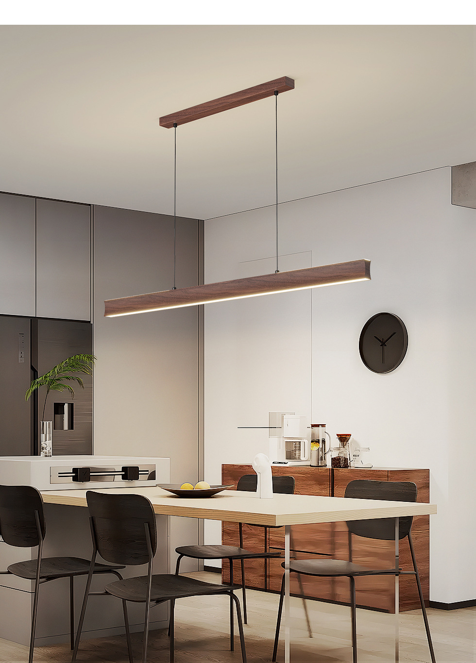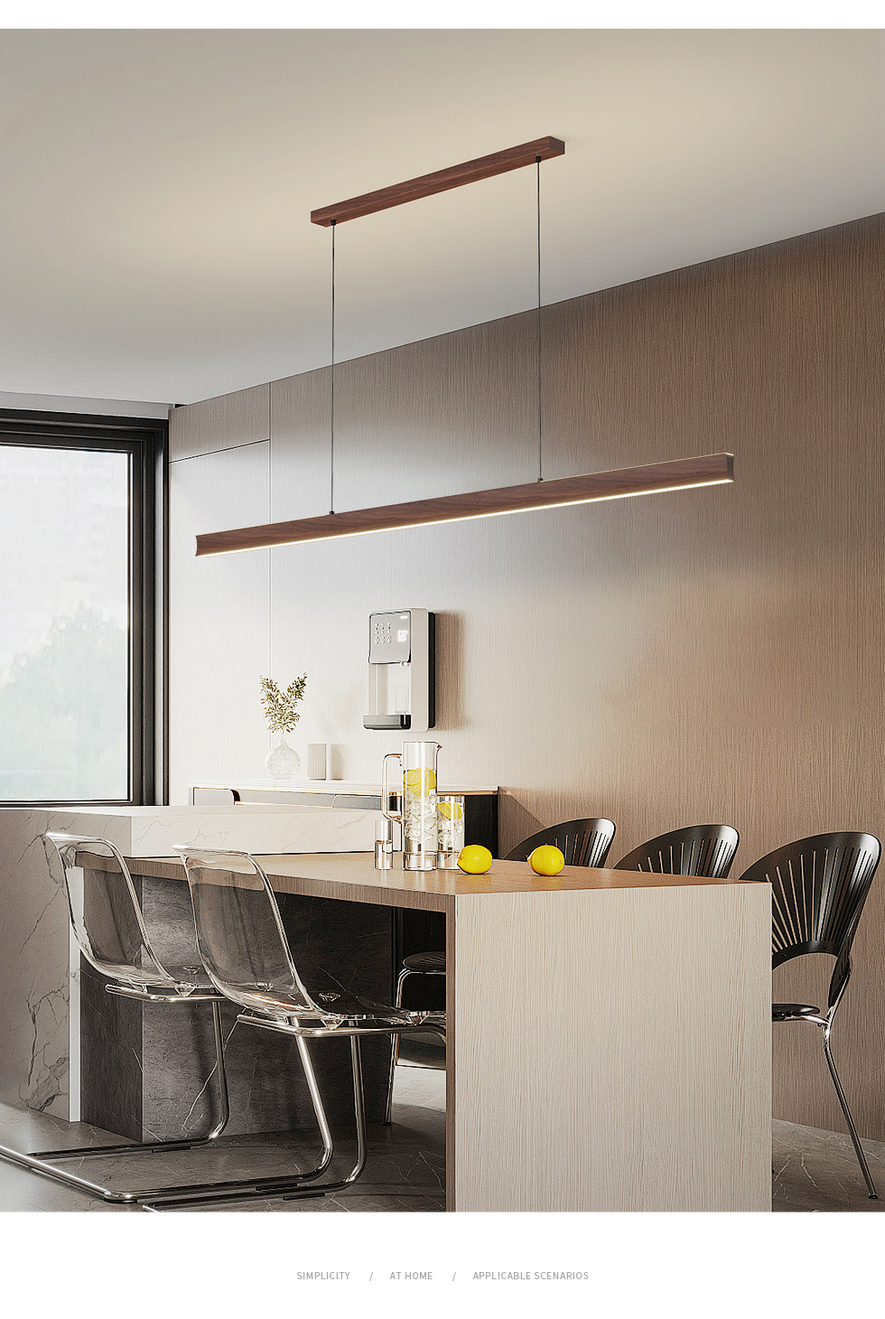Nuevo candelabro de restaurante de color nogal, moderno y simple, nuevo salón de té zen chino, lámpara de mesa de estudio de tira larga de madera maciza