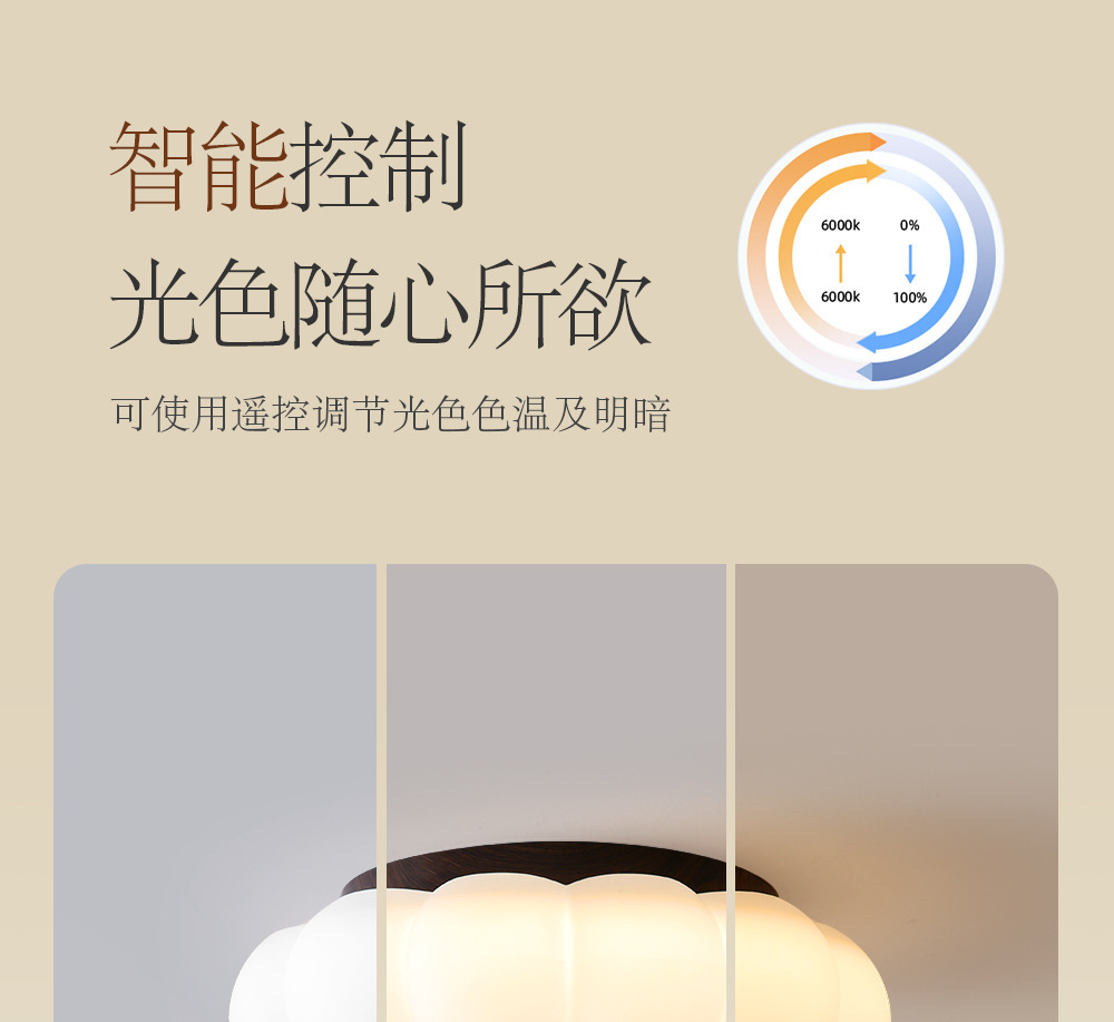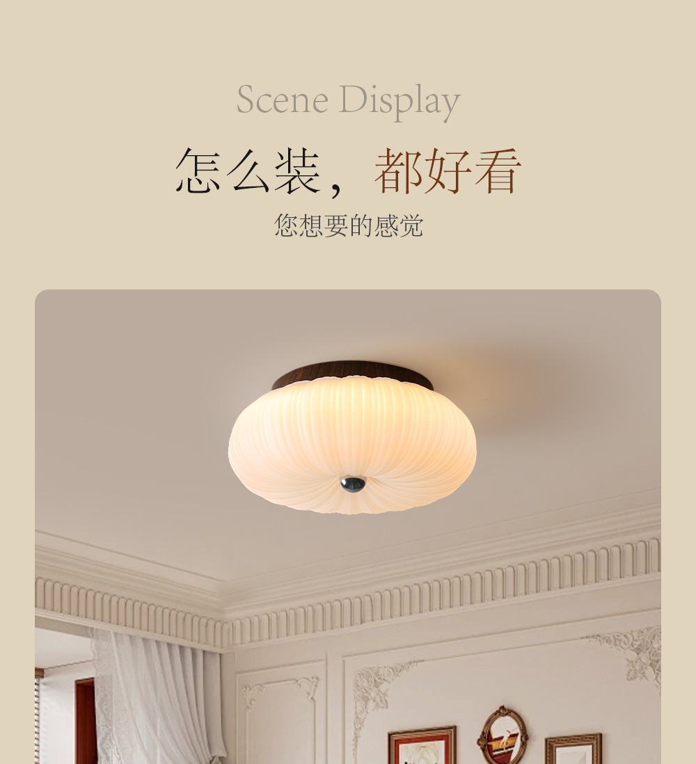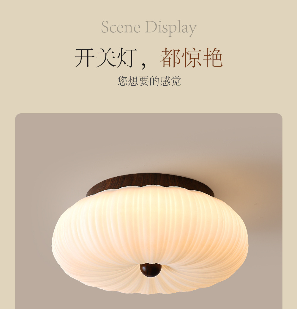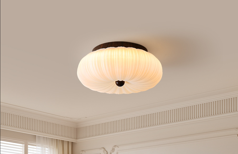 Medieval dormitorio esmerilado lámpara de techo habitación estilo crema calabaza súper brillante protección ocular LED Zhongshan lámpara