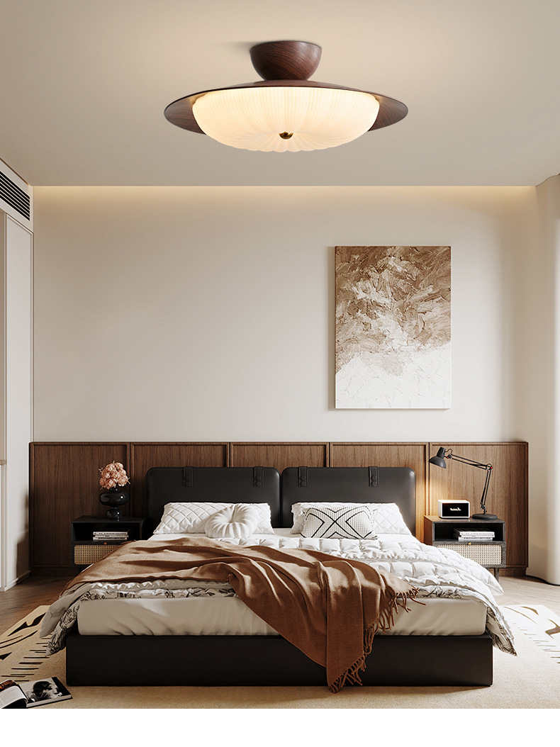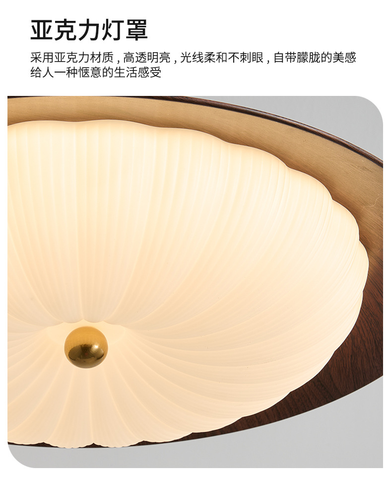 Lámpara de techo de dormitorio nuevo estilo estilo antiguo patrón de nogal ambiente cálido luz de habitación luz de estudio LED redonda