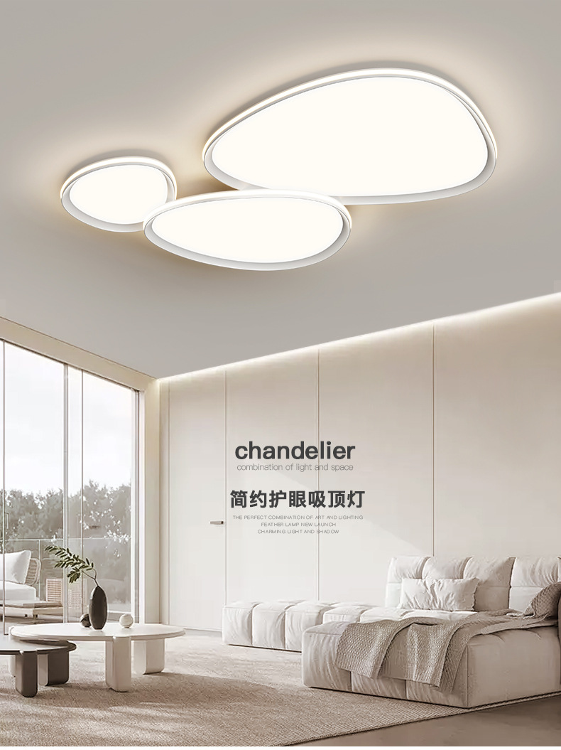 Lámpara de techo de sala de estar, lámpara de Guangdong Zhongshan, lámpara principal de guijarros de atmósfera simple moderna, nueva lámpara de nube 2025