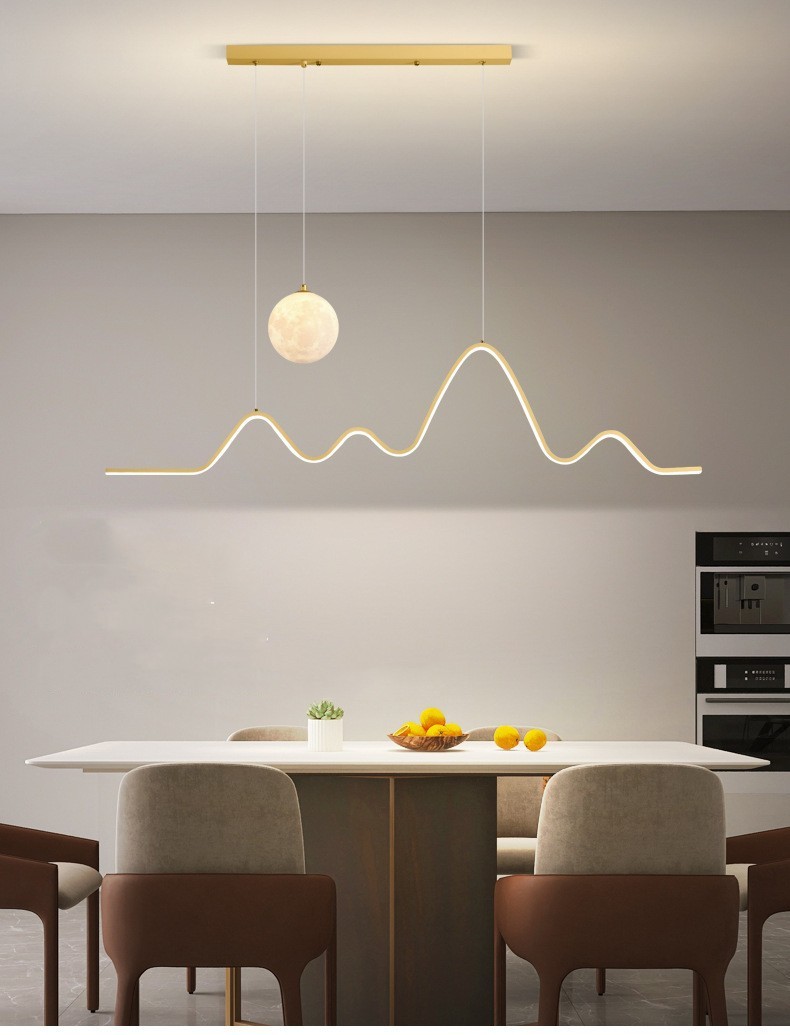 Candelabro de restaurante, mesa de comedor de lujo ligero, barra de bar, lámpara, luz de luna moderna y simple, luz de comedor de tira larga minimalista