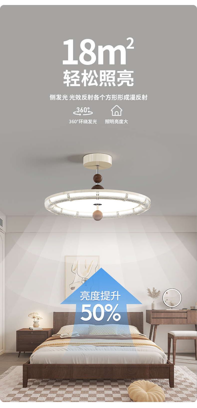 Lámpara de techo de dormitorio principal retro con grano de madera de nogal medieval