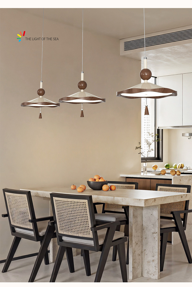 Lámpara de restaurante de estilo antiguo retro color nuez de espectro completo protector de ojos led lámpara de mesa de comedor 2025 nuevo