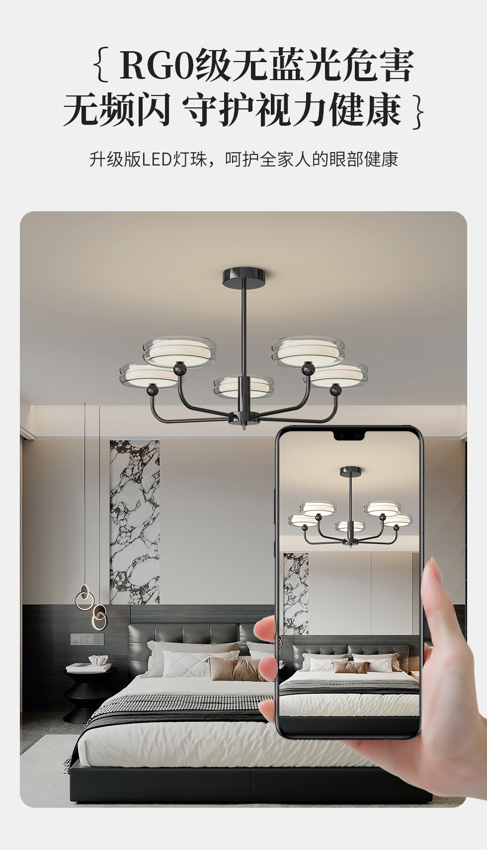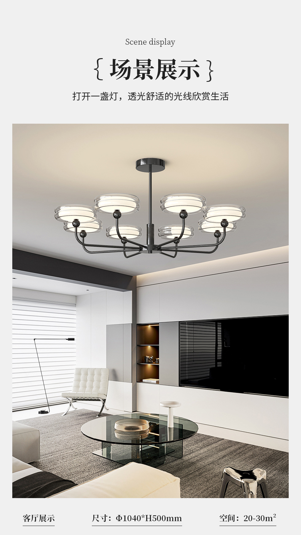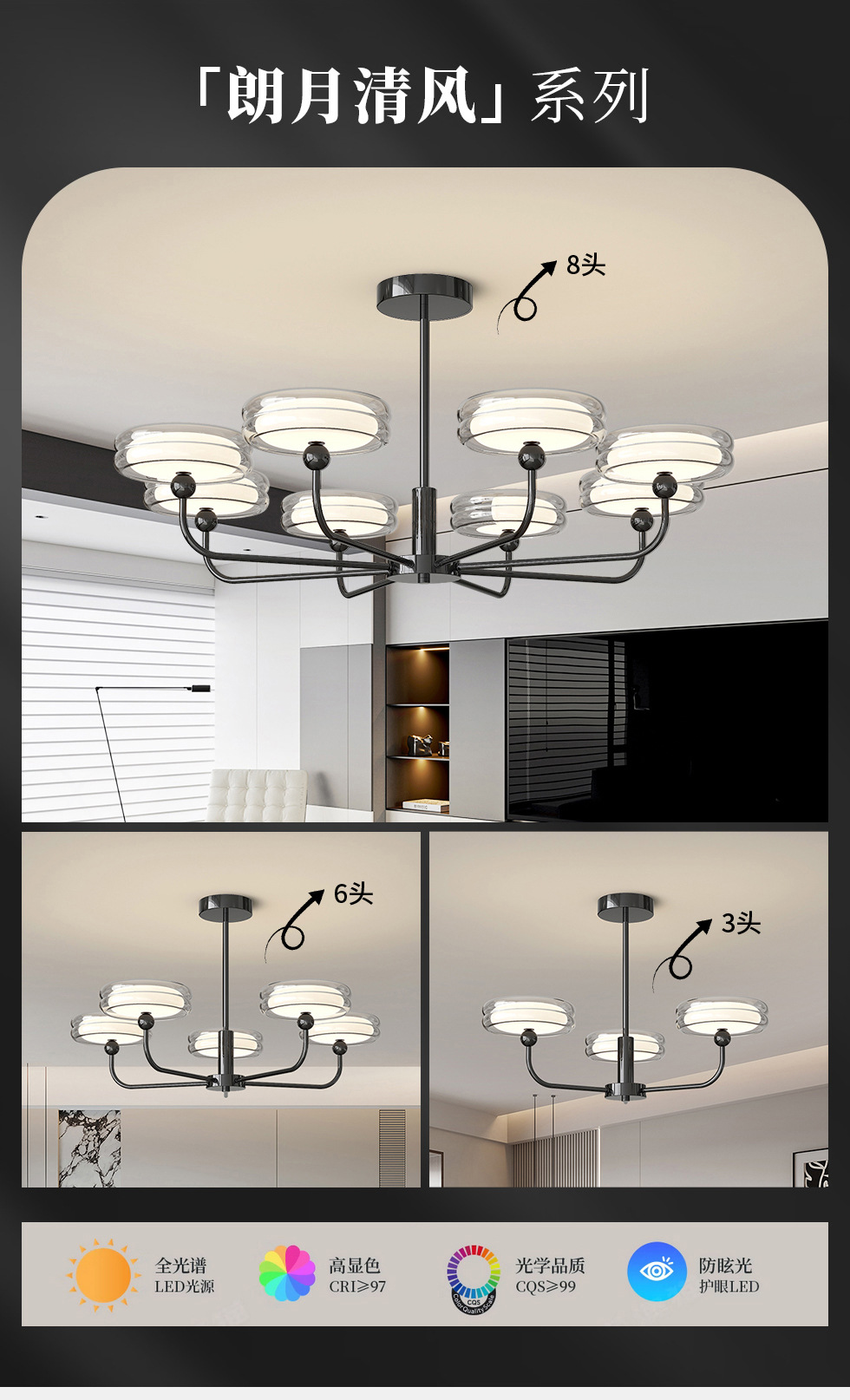 Lámpara de sala de estar, lámpara de araña de rama, lámpara principal de sala, lámpara de protección ocular LED de espectro completo de estilo crema simple moderna