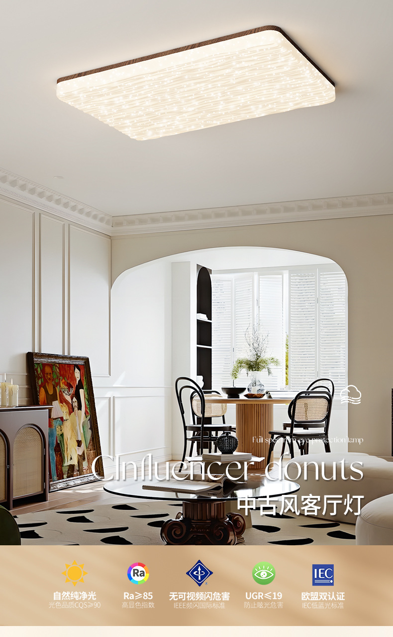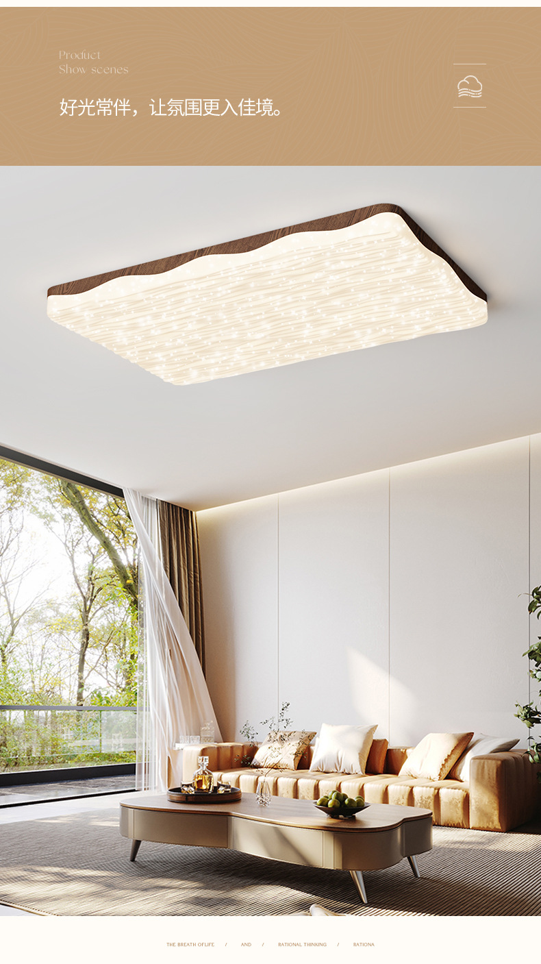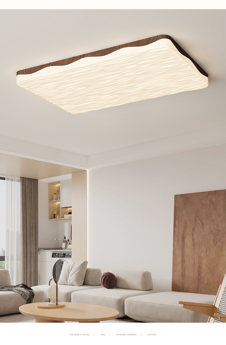 Lámpara de techo de sala de estar de estilo antiguo, color de nogal retro francés, lámpara de salón de ondas creativas, lámpara de habitación de protección ocular para el hogar