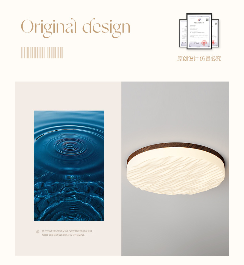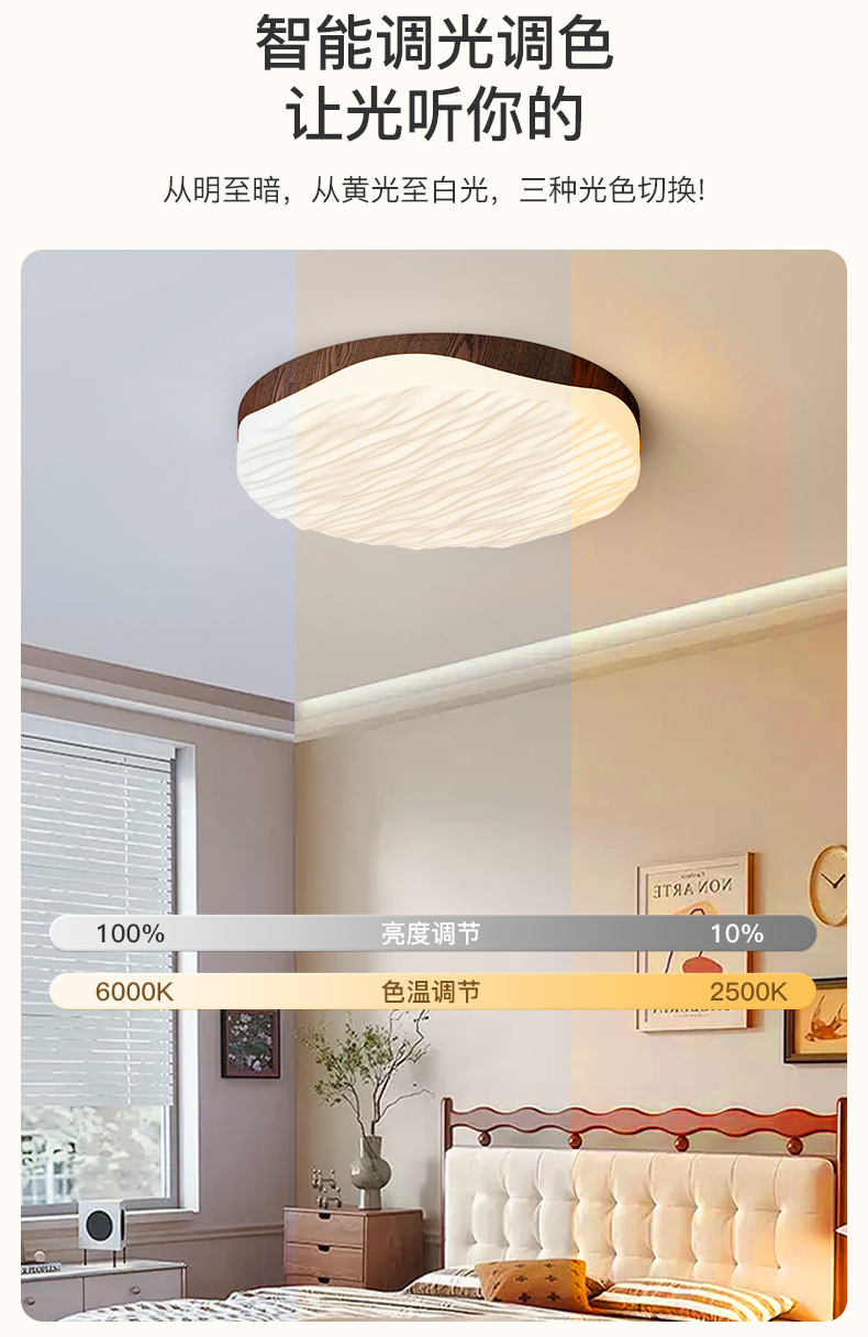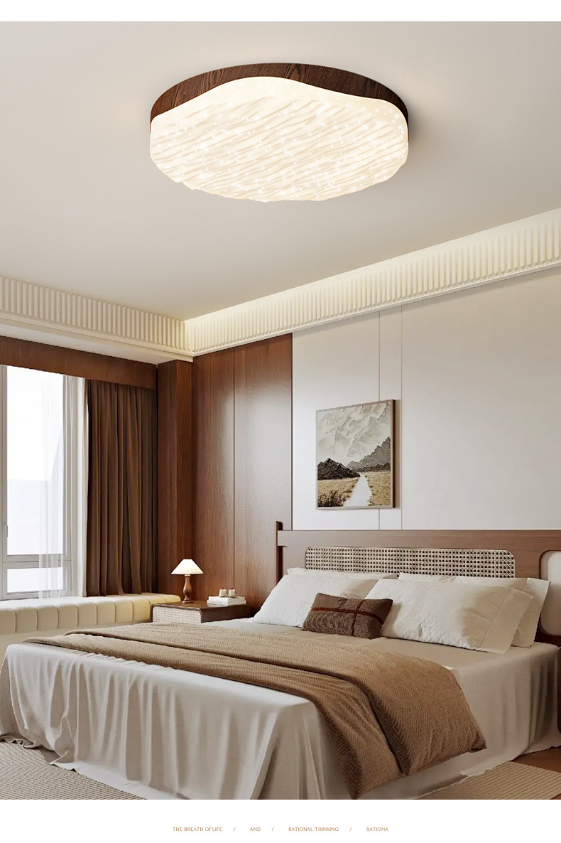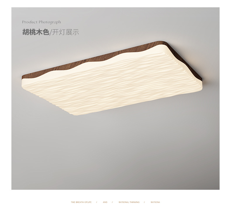 Lámpara de techo de sala de estar de estilo antiguo, color de nogal retro francés, lámpara de salón de ondas creativas, lámpara de habitación de protección ocular para el hogar