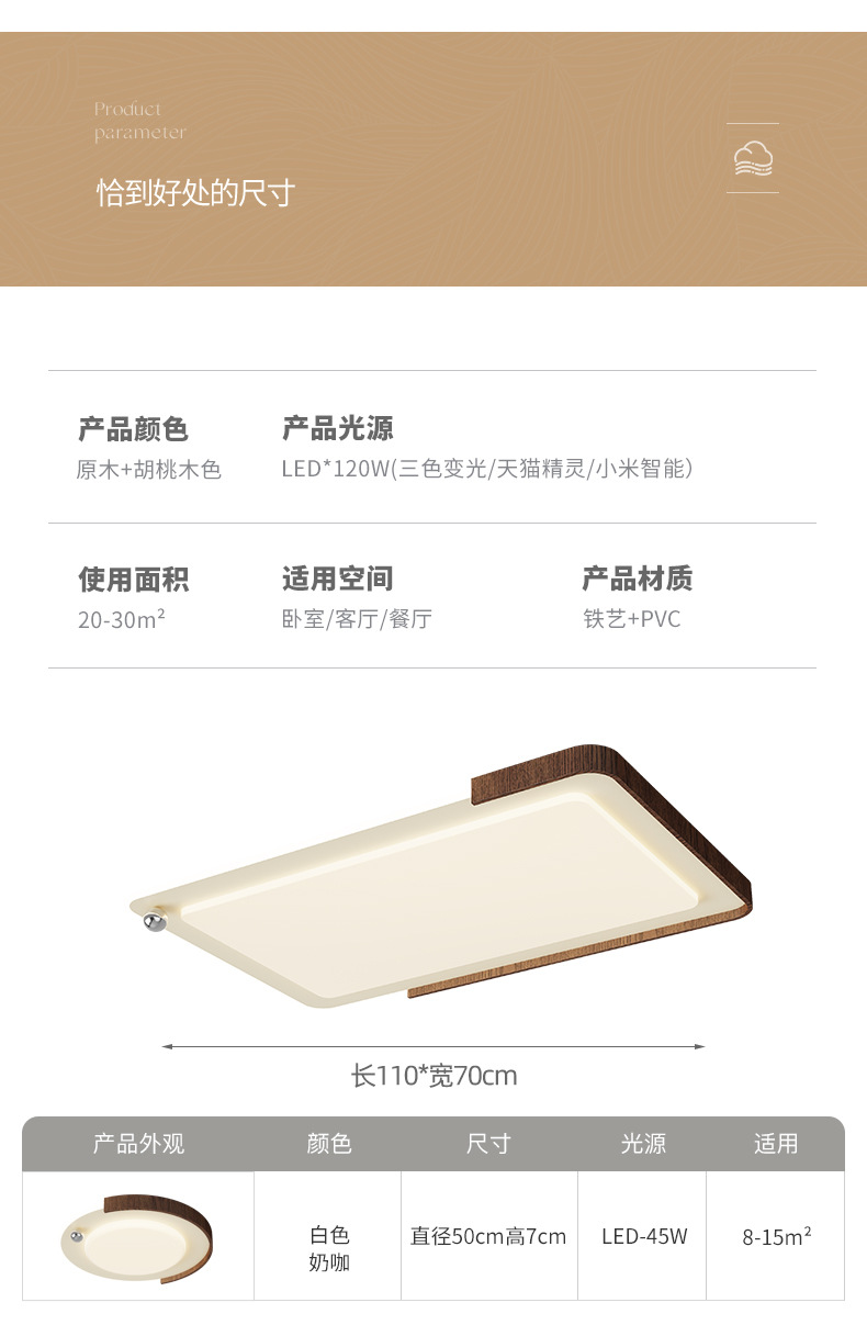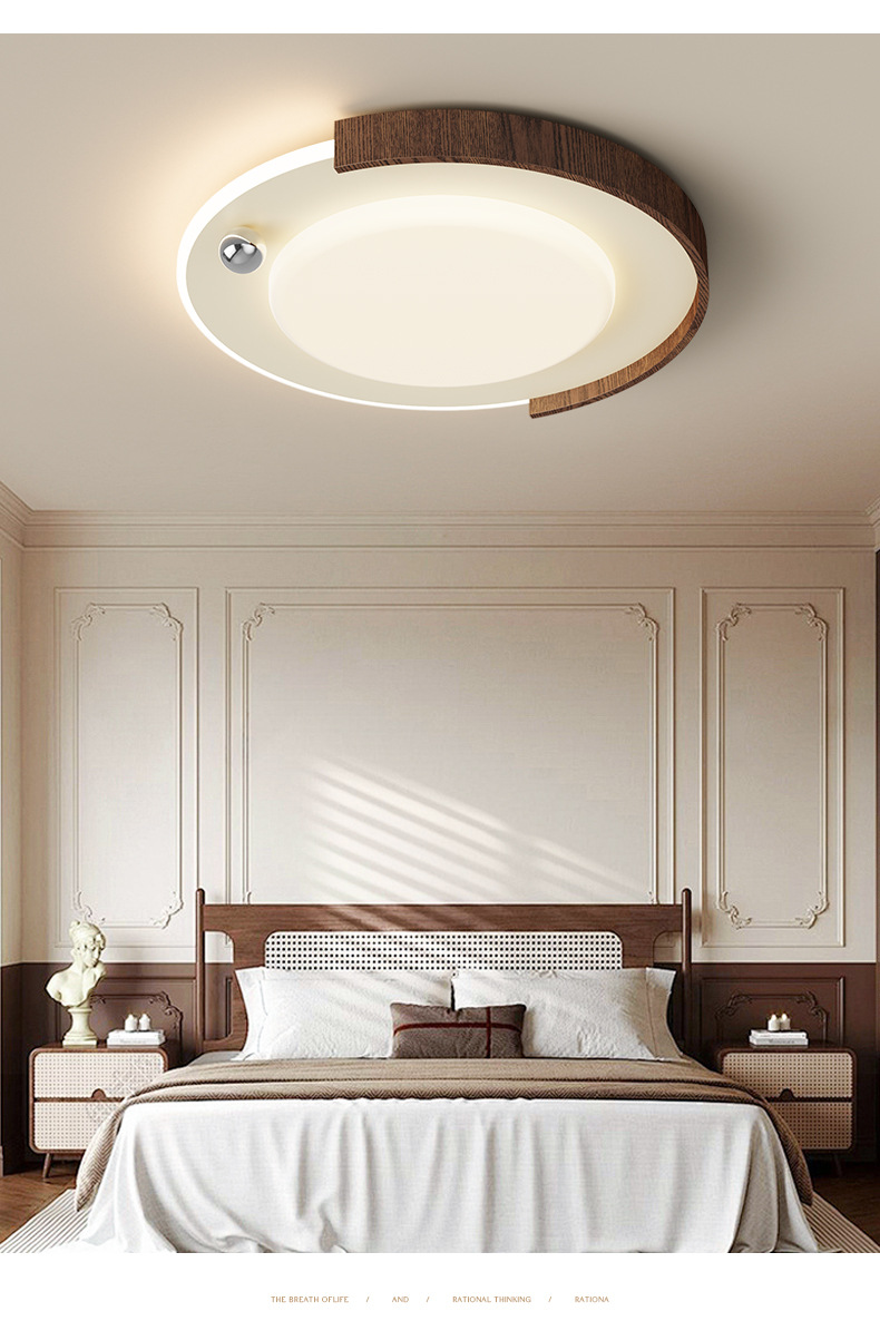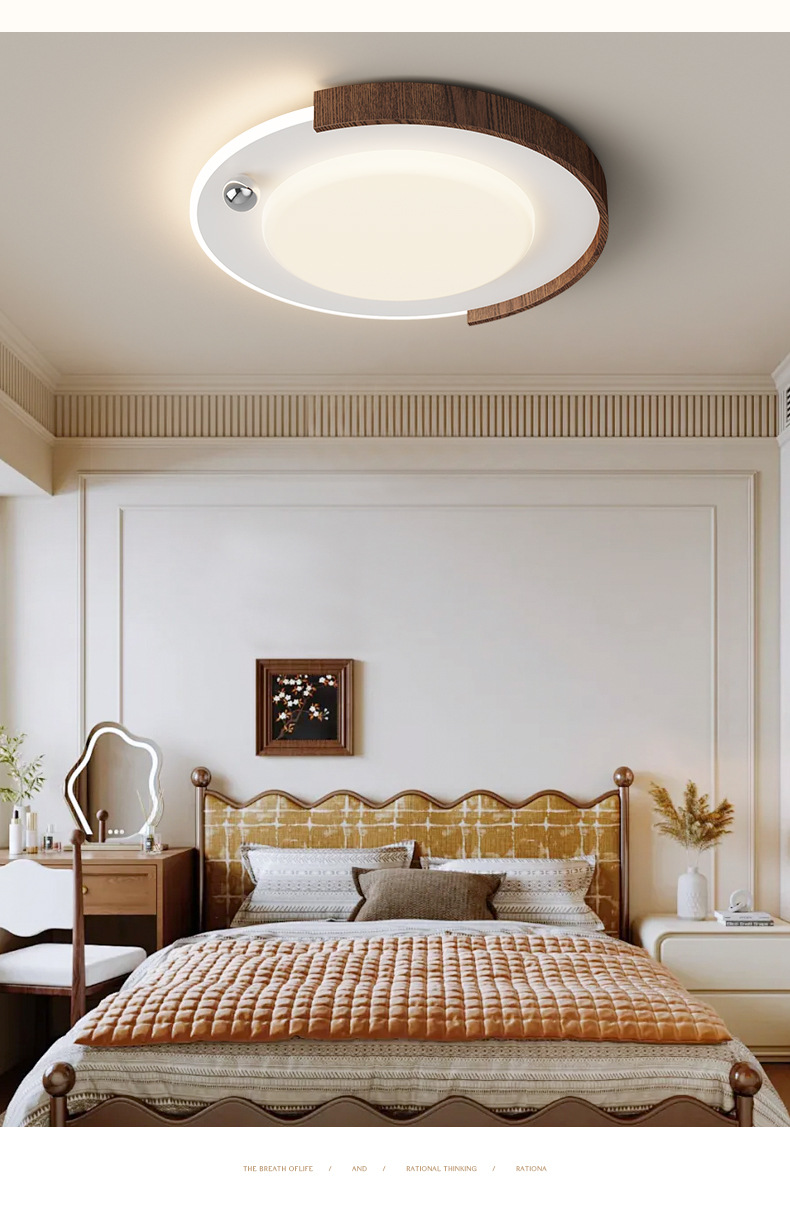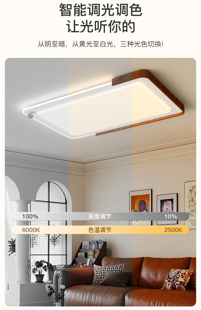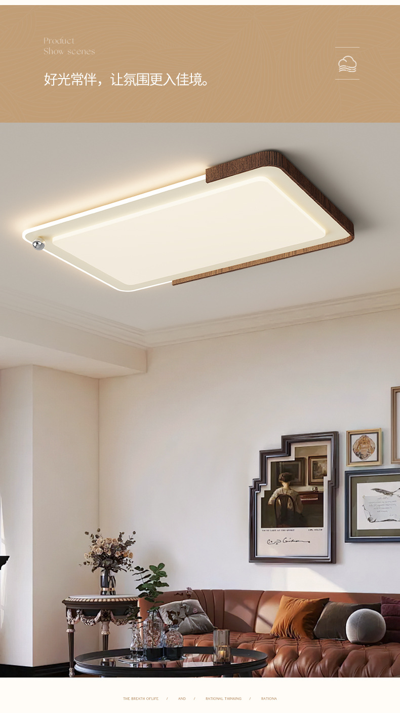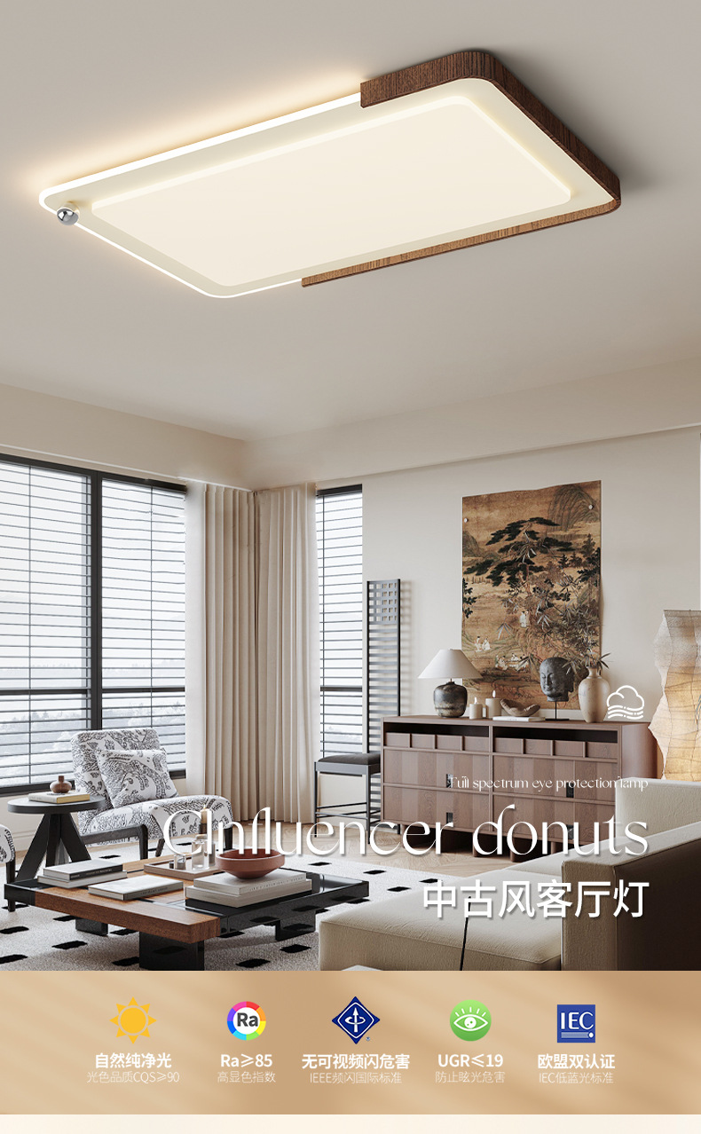 Lámpara de sala de estar Retro Wabi-Jifeng Color de nogal Lámpara de techo de sala Lámpara de Zhongshan de estilo crema antigua de espectro completo