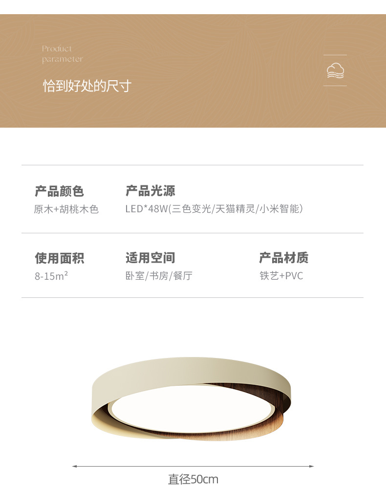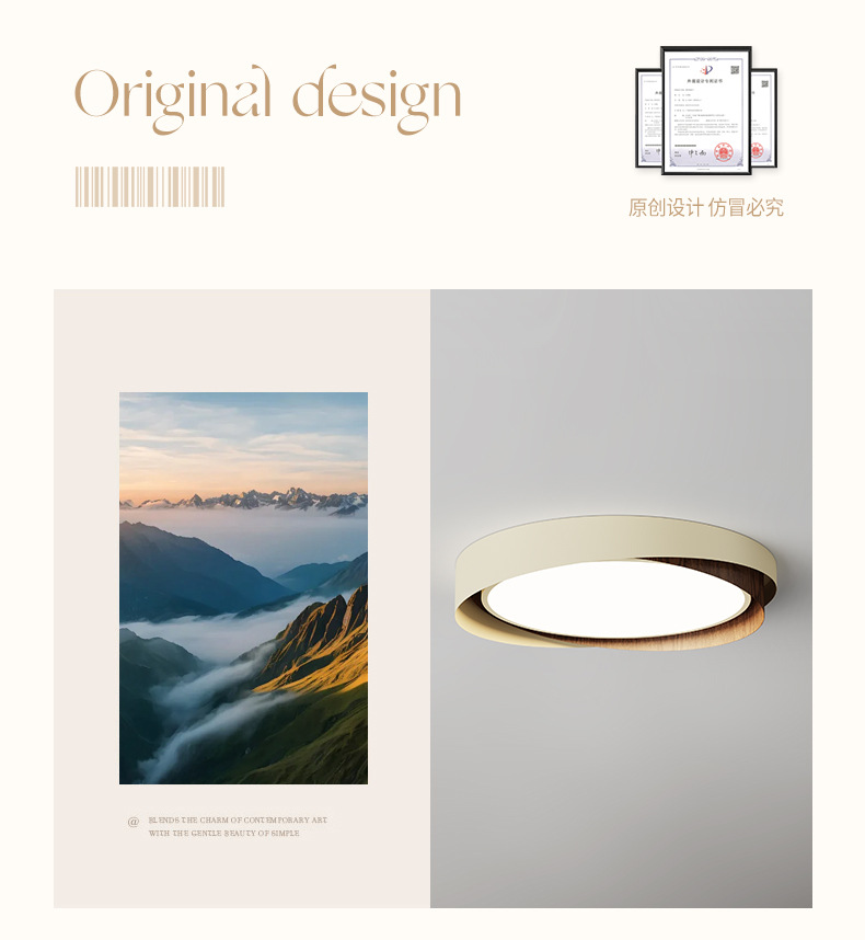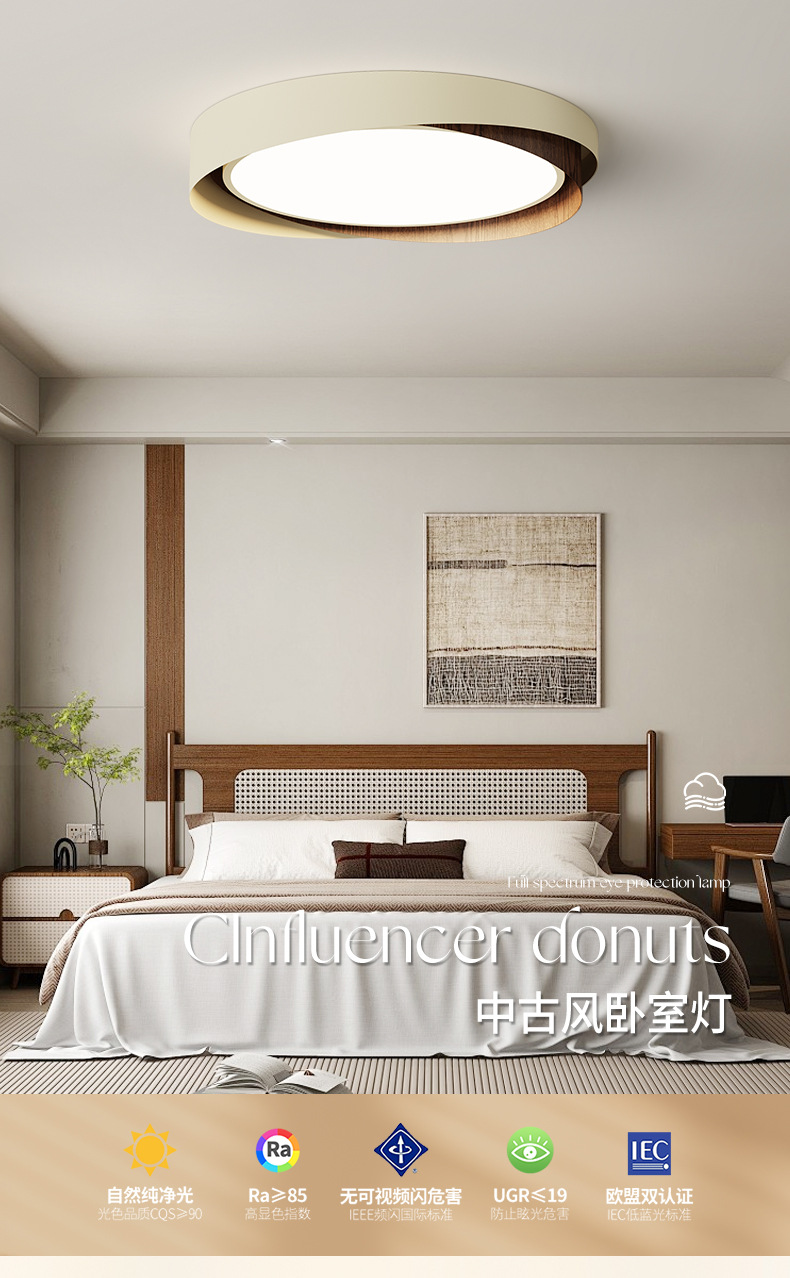Estilo japonés, lámpara de dormitorio de viento silencioso, lámpara de techo de protección ocular de color nogal, sala de estudio, dormitorio principal, lámpara de sensación avanzada de estilo antiguo medio