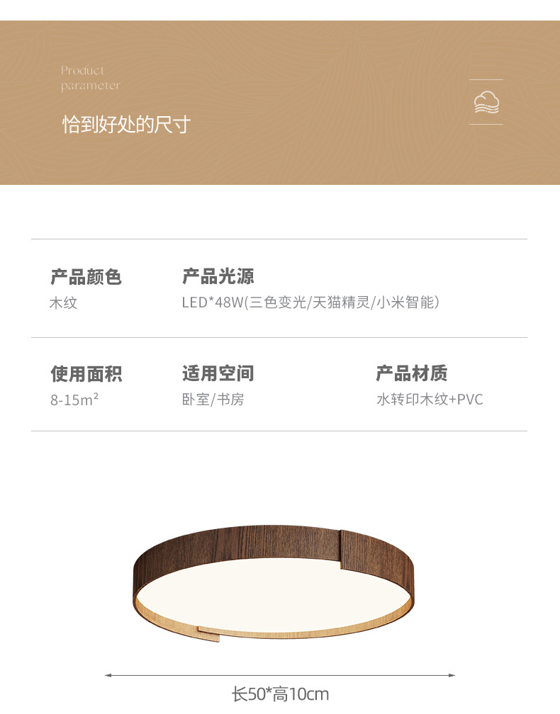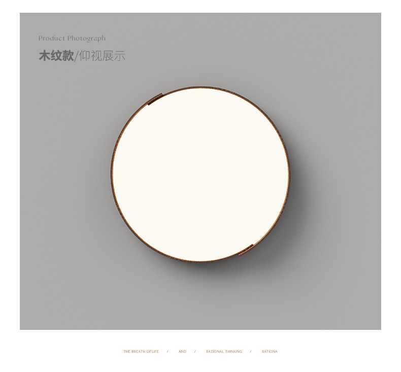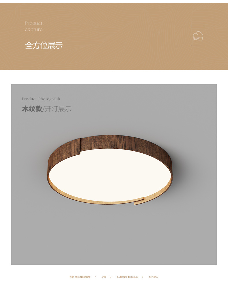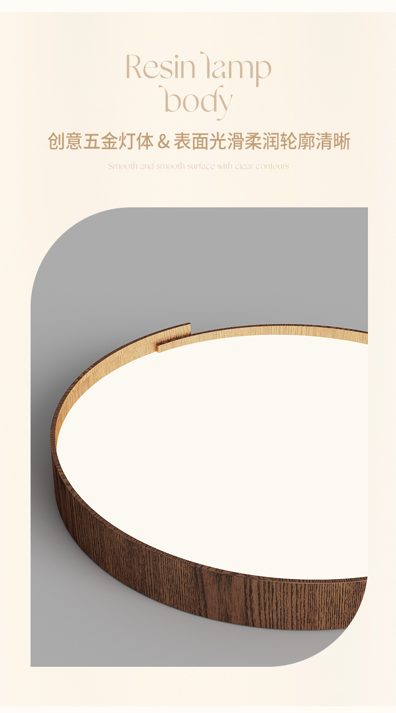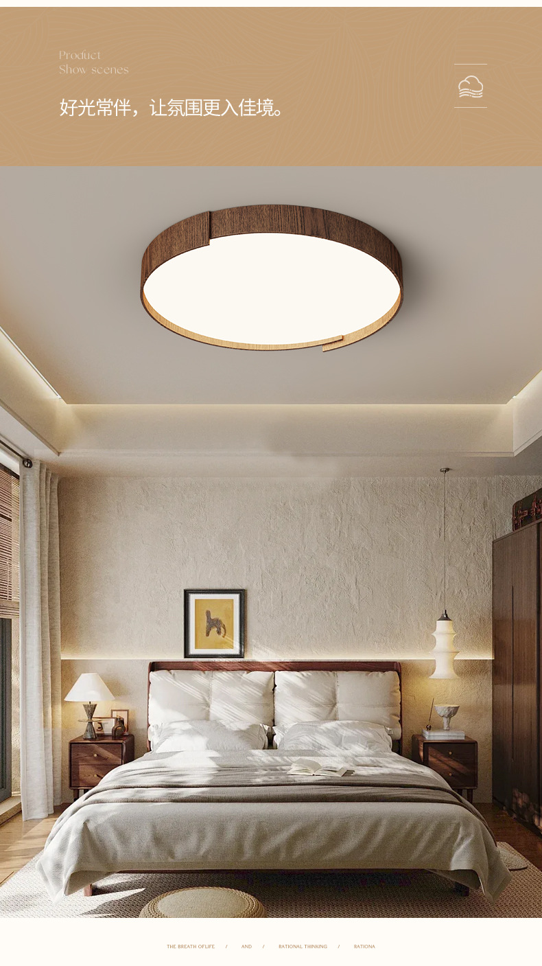 Lámpara de techo de dormitorio de estilo retro, personalidad de moda, grano de madera de nogal moderno, lámpara de sala de estar de protección ocular de espectro completo redondo